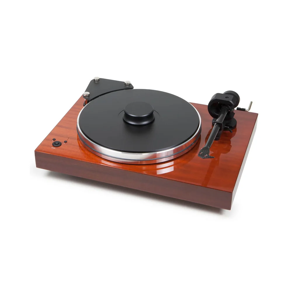 В Pro-Ject Xtension 9 задействован электромотор с невысоким уровнем шума, соединенный с опорным диском с помощью пассикового привода. Шкив двигателя прикрыт сверху небольшой пластиной, которая крепится с помощью болтов, улучшает внешнюю эстетику модели и выполняет защитные функции. Переключение скоростей вращения происходит электронным способом с помощью кнопок. Доступны два варианта: 33,3 или 45 об/мин.
