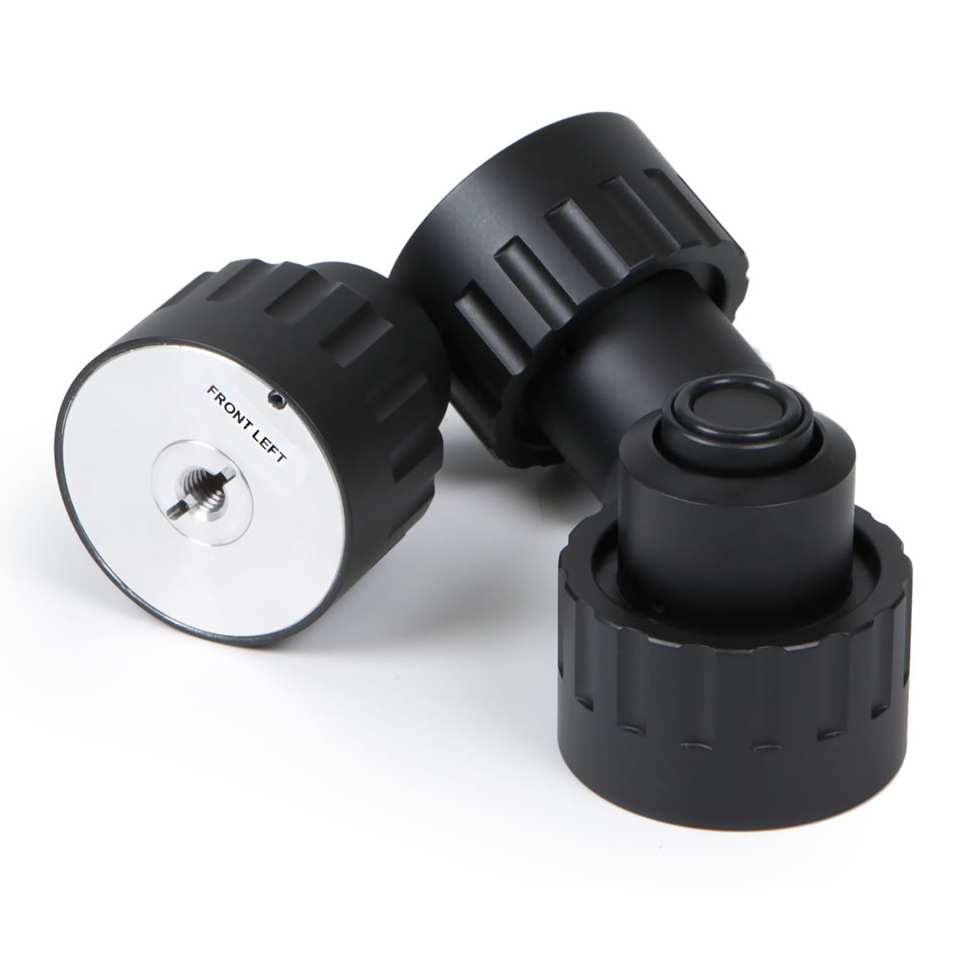 Стол изготовлен из MDF. Место вокруг основного подшипника заполнено металлическим наполнителем (гранулятом), который повышает антирезонансные свойства проигрывателя, а также развязывает подшипник с корпусом. Основание Xtension 9 опирается на специальные регулируемые магнитные ножки, обеспечивающие эффективное подавление вибраций.
