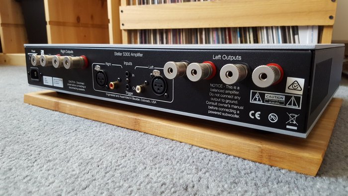 PS Audio Stellar S300 собран в аккуратном низкопрофильном корпусе и полностью отвечает аудиофильским канонам и обладает схемотехникой, соответствующей принципу «двойного моно». В такой конструкции каждый канал имеет отдельный блок питания и остается полностью независимым, что способствует значительному уменьшению искажений. Модель располагает серьезными показателями мощности в 300 Вт на канал при нагрузке в 4 Ом и в 140 Вт при 8 Ом, а благодаря высокому коэффициенту демпфирования и способности стабильно работать даже с 2-омной нагрузкой усилитель легко справляется с любой акустической системой. Среди особенностей PS Audio Stellar S300 также следует отметить широкий частотный диапазон.