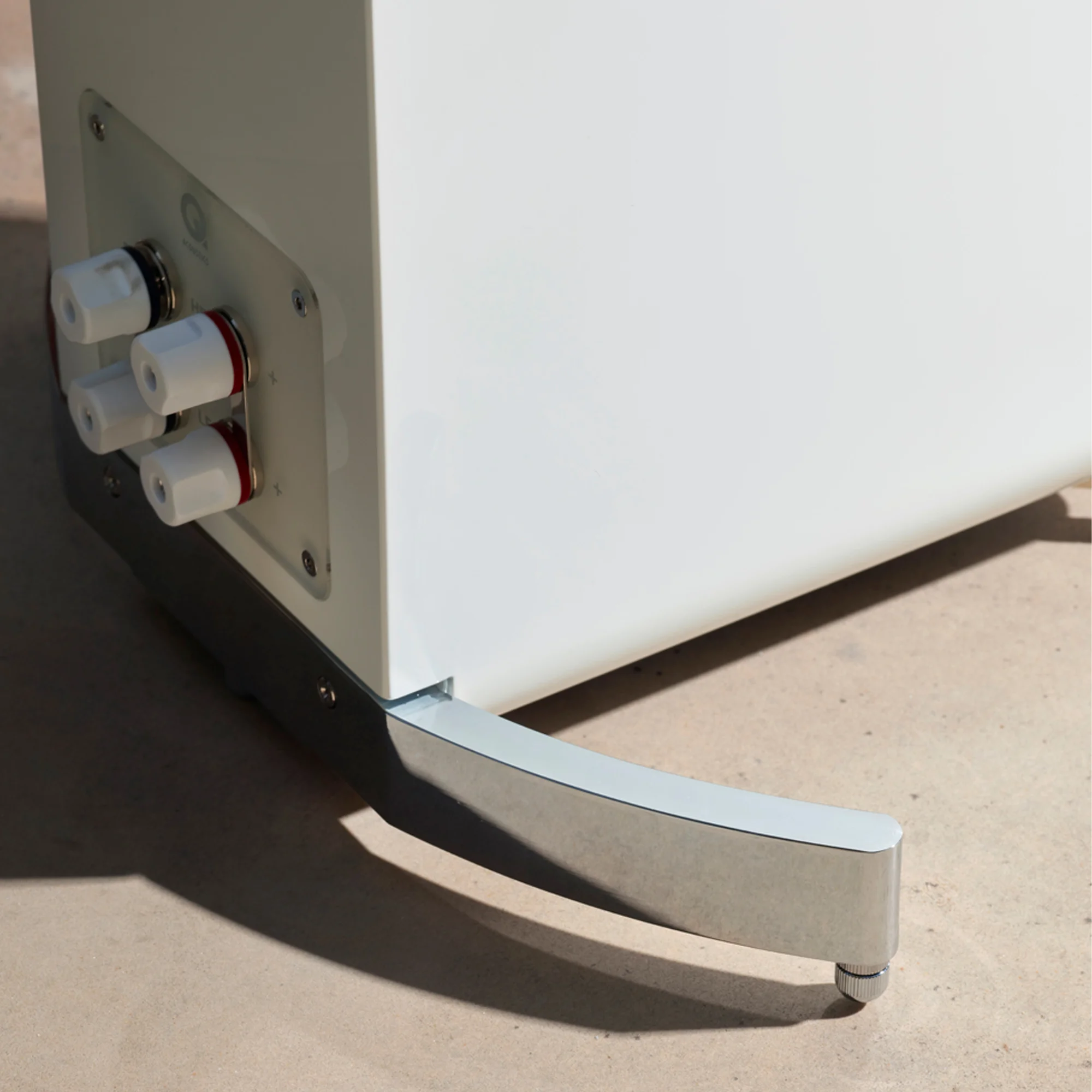 Перед установкой в кабинет драйверы крепятся к чрезвычайно жесткой алюминиевой перегородке толщиной 3 мм – это обеспечивает правильную акустическую изоляцию, гашение вибраций и минимизацию структурных связей. В другом месте высокочастотный динамик герметично закрыт и механически изолирован от перегородки, что означает меньшие искажения и более низкую точку разделения для плавной интеграции через область разделения. Более крупная звуковая катушка СЧ/НЧ-динамика диаметром 30,5 мм увеличивает мощность двигателя, что приводит к увеличению мощности на 50 % по сравнению с аналогичным динамиком со звуковой катушкой диаметром 25,4 мм. Наконец, сам кроссовер крепится к изолирующему основанию, защищая его от звуковых вибраций и электромагнитного воздействия самих динамиков.