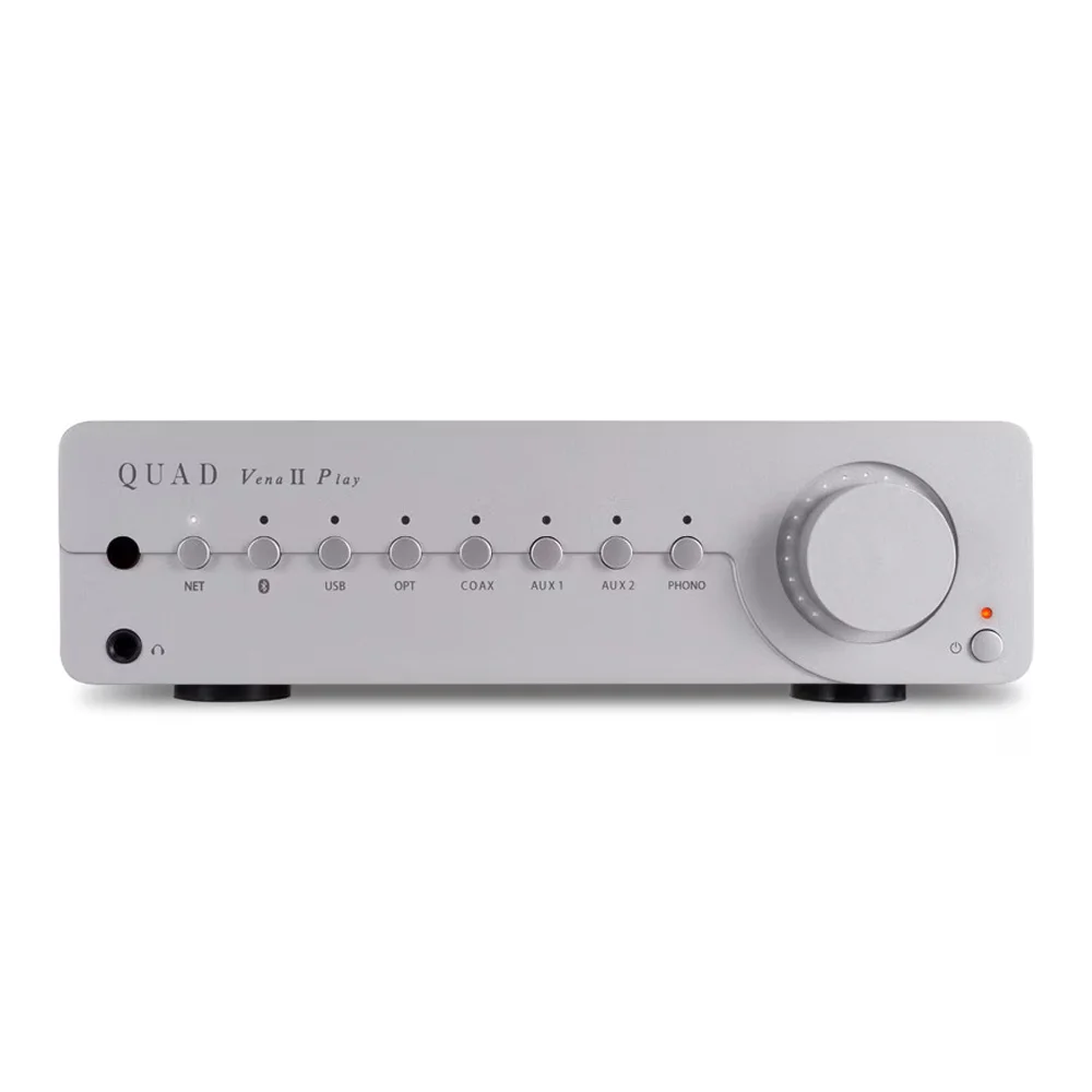 В блоке питания усилителя установлен тороидальный трансформатор мощностью 200 Вт, а также фильтрующие конденсаторы емкостью 2 х 15000 мкФ. Выходные каскады Quad Vena II Play были доработаны по сравнению с предыдущей моделью, благодаря чему искажения звука удалось дополнительно снизить.