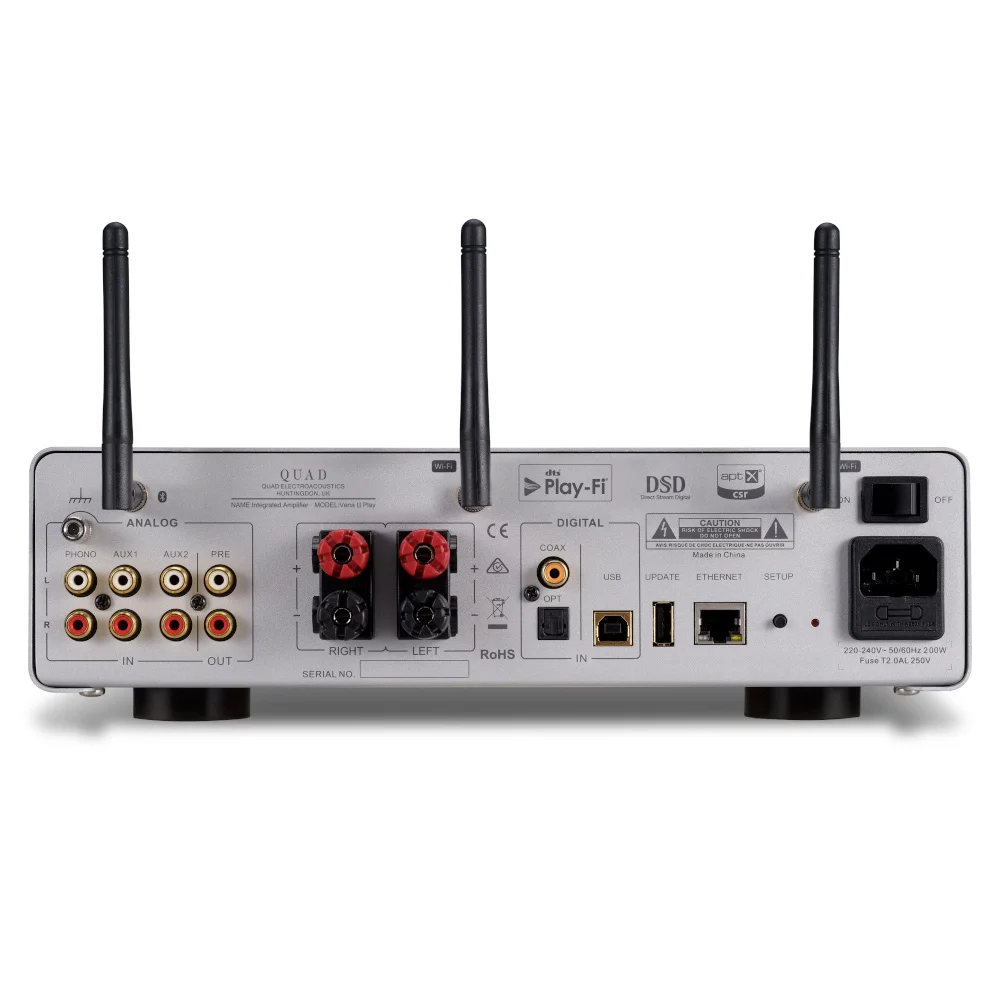 Vena II Play – новейший представитель фирменной линейки интегральных усилителей. Его отличительной черта поддержка беспроводных и потоковых сервисов, а также возможность работы в составе мультирум-систем. Уникальность устройства подчеркивает и значительно обновленная платформа, построенная на базе стандартной модели Vena II, и технологии DTS Play-Fi. На практике это означает, что усилитель способен «на лету» и без сколько-нибудь заметных задержек обрабатывать высококачественный музыкальный контент, передаваемый стриминговыми сервисами при беспроводном подключении. В роли источника при этом могут выступать любые устройства домашней сети: от смартфонов и планшетов до персональных компьютеров или внешних файловых хранилищ типа NAS.