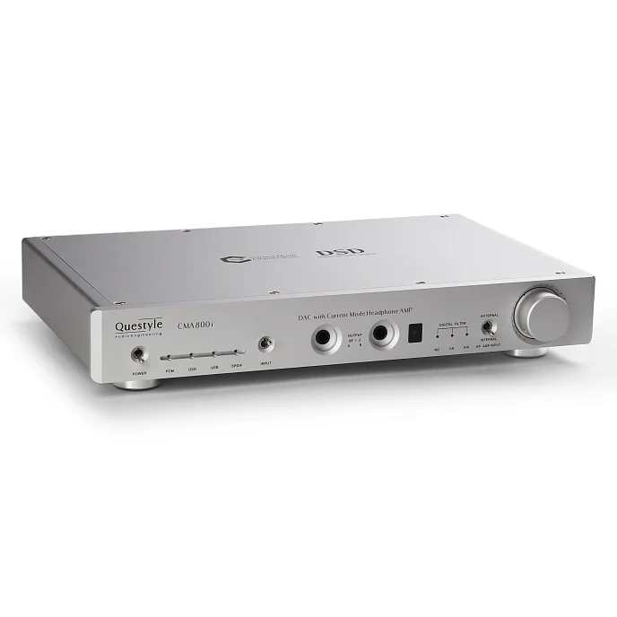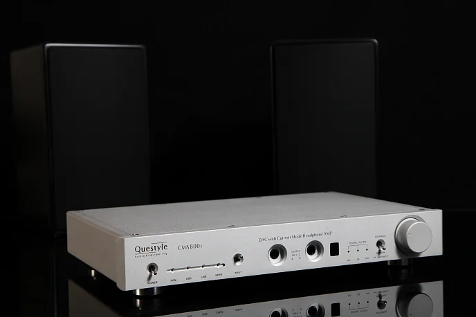 Динамичное звучание Questyle CMA800i отличается прозрачностью и чистотой, высоким разрешением, точным тональным балансом и выверенным басовым панчем. Благодаря технологии CMR усилитель легко справляется с высокоомными наушниками. Модель использует два цифровых фильтра: обычный FIR (с конечной импульсной характеристикой) и более эффективный IIR, который устраняет предсигнальные искажения (pre-ring), возникающие перед фронтами импульса, обеспечивая более когерентный и натуральный звук. Были использованы отборные комплектующие: конденсаторы Nichicon FG и WIMA, резисторы DALE и заказной тороидальный трансформатор Plitron в БП.