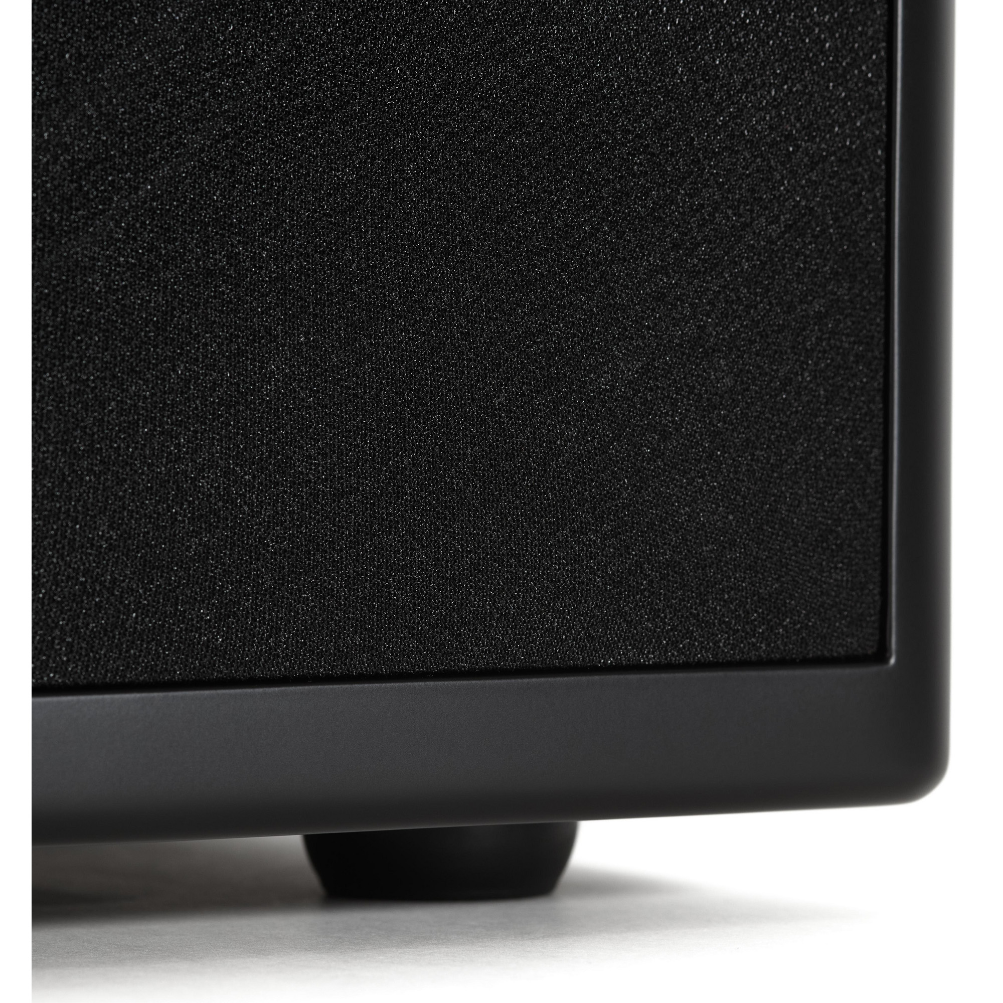 Мощность встроенного усилителя в Radiotehnika SUB12 составляет 350 Вт. В переднюю панель его корпуса встроен 30-сантиметровый низкочастотный излучатель с диффузором из композита на основе целлюлозы, по бокам он дополнен парой пассивных 300-миллиметровых излучателей.