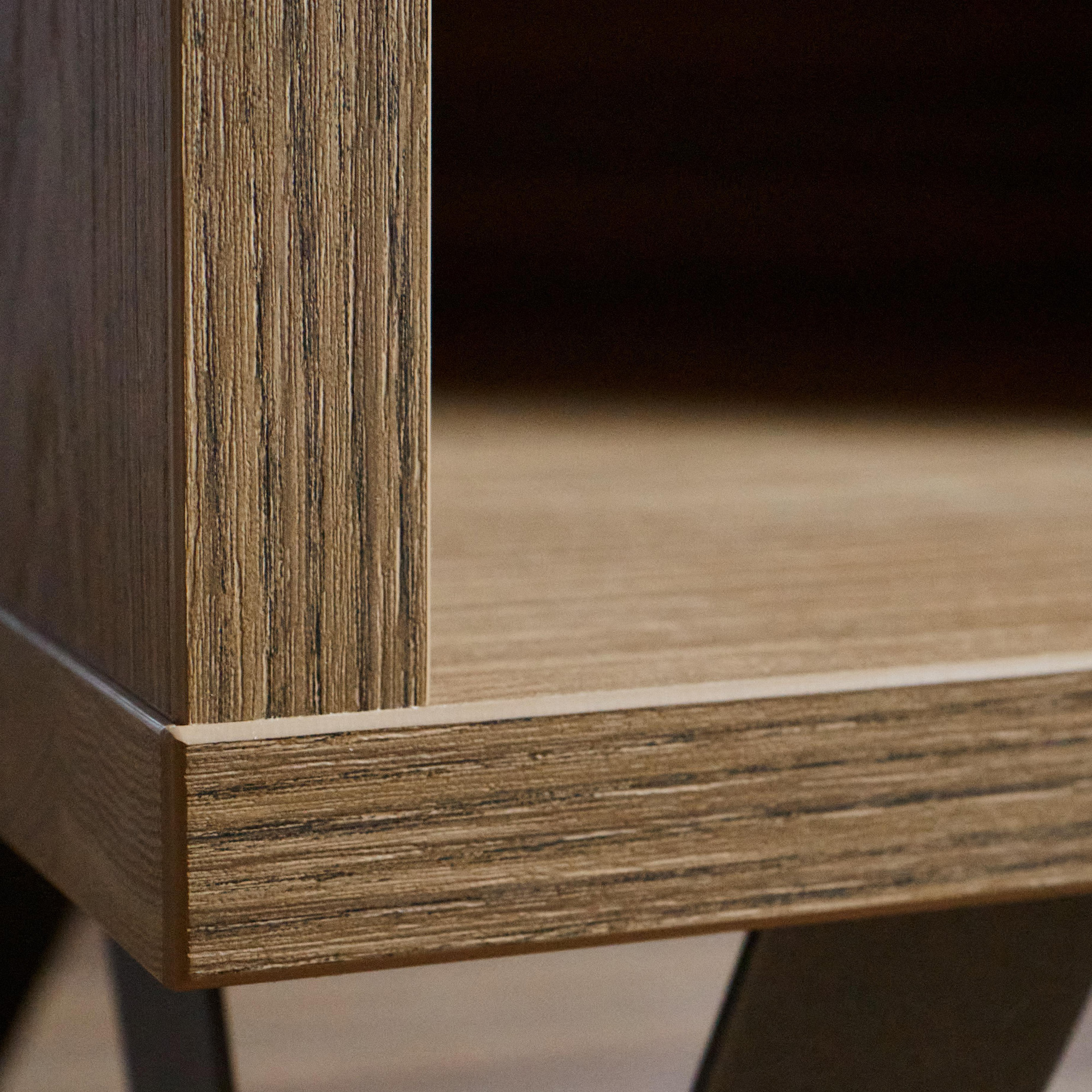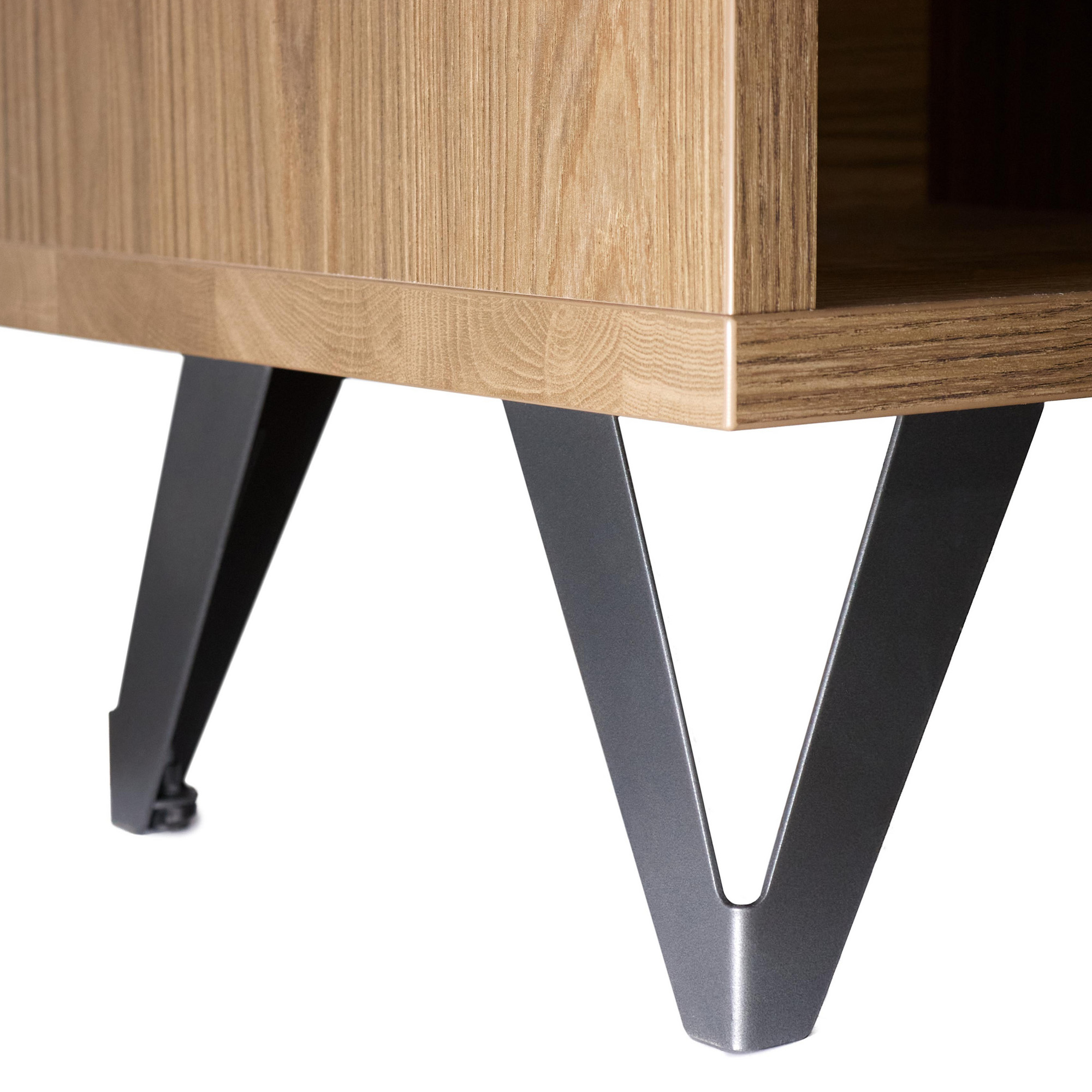 Radiotehnika Rondo 302 предназначена для виниломанов, желающих красиво и правильно разместить свою аудиосистему и музыкальную коллекцию. Тумба изготовлена из ЛДСП-панелей Egger премиум-класса, отличающихся качественной внешней отделкой и надежностью. В модели есть три открытых секции для пластинок, а также два вместительных ящика, снабженных удобным механизмом плавного закрытия. Площадь поверхности тумбы достаточна не только для проигрывателя винила, но и Hi-Fi-компонентов.