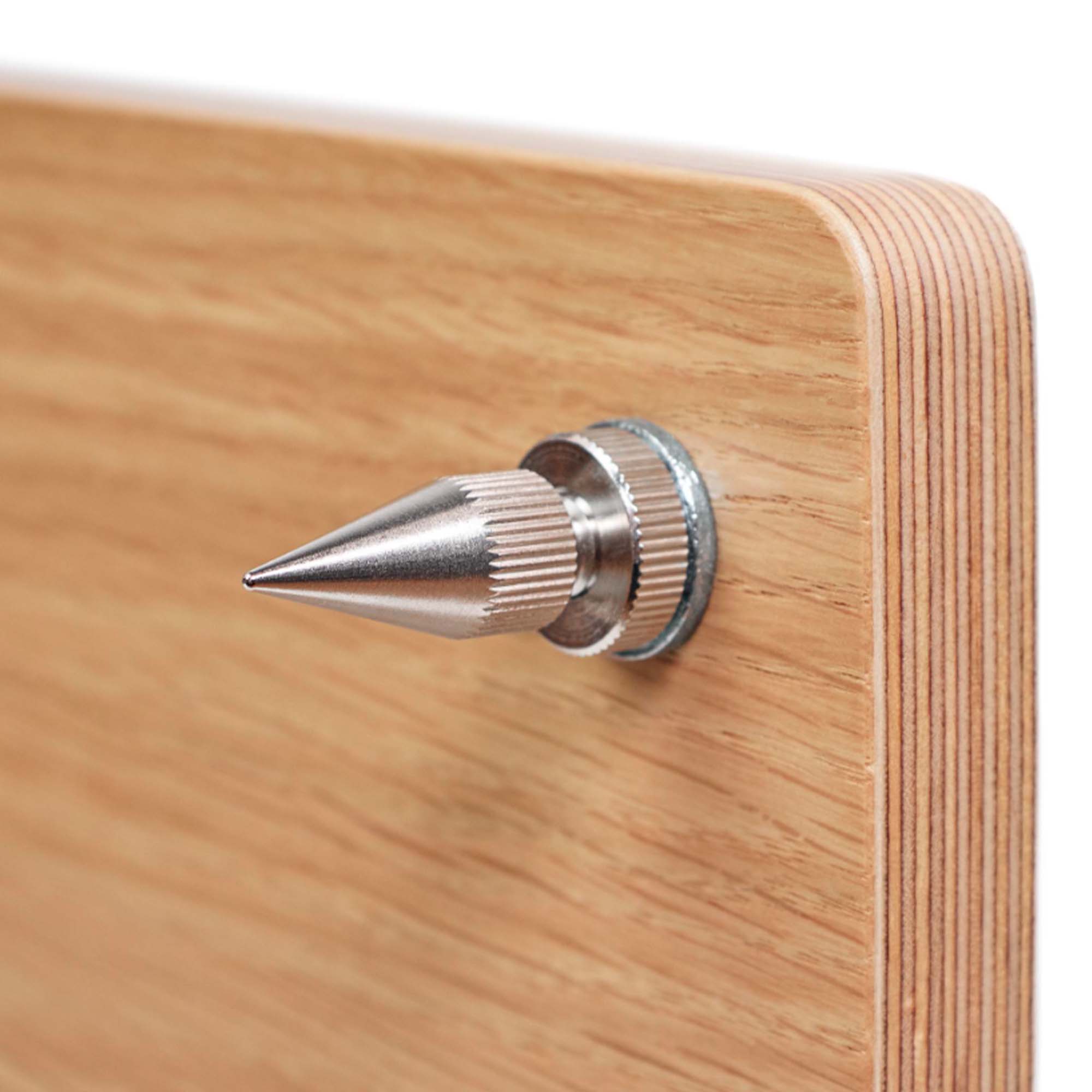 Верхняя и нижняя плиты Radiotehnika T7 изготовлены с высокой точностью из MDF и покрыты натуральным шпоном, а опора сделана из алюминия. Модель имеет прочную конструкцию, устойчивую к вибрациям, и опорные шипы, обеспечивающие эффективную развязку от пола. При желании центральную колонну можно заполнить балластом: прокаленным песком или мелкой свинцовой дробью. Это увеличит вес Radiotehnika T7 и дополнительно демпфирует их. Регулируемые опорные шипы на нижней плите позволяют точно выровнять положение стойки по горизонтали.