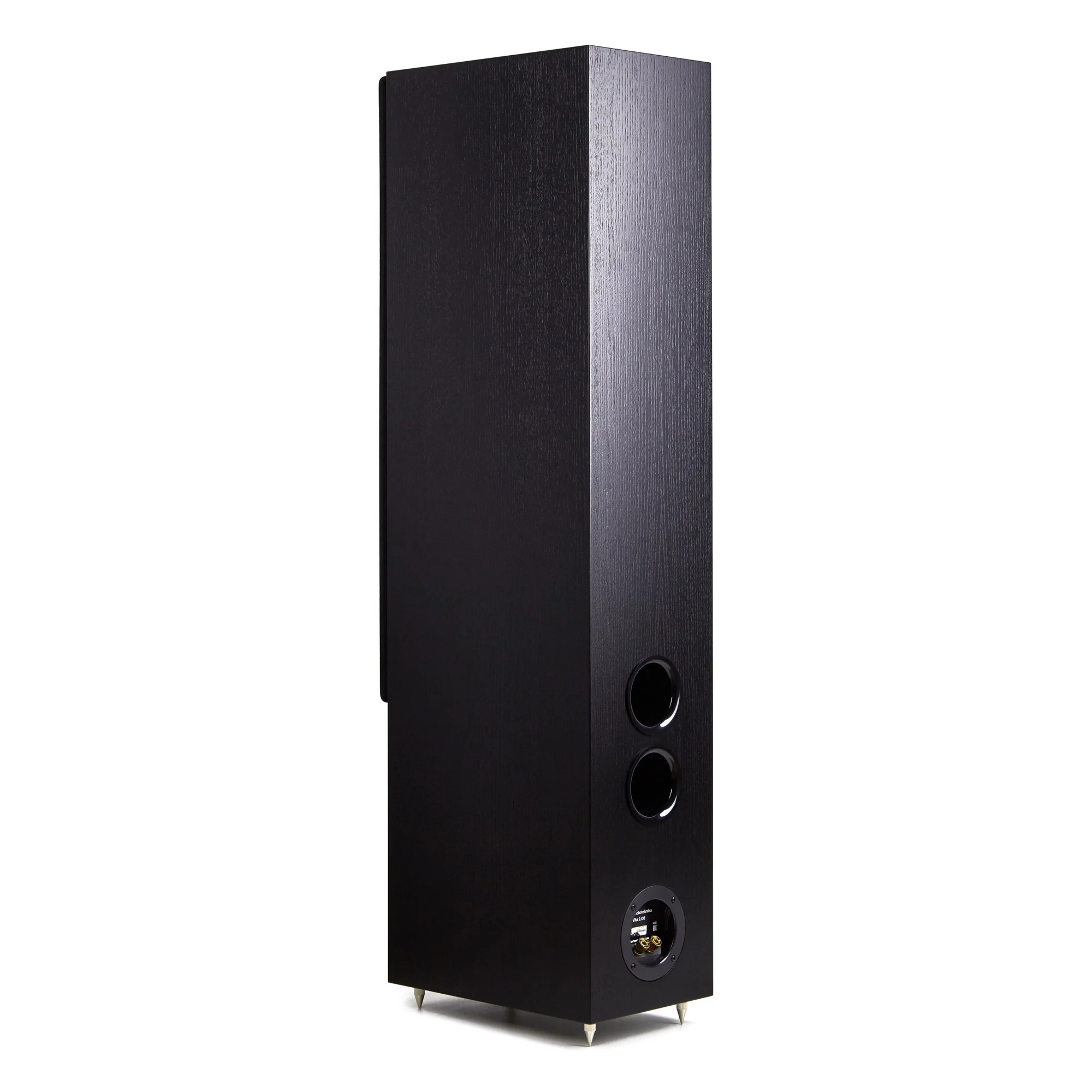 Блок входных клемм заглублен в заднюю панель для возможности установки Vita 2.06 с минимальным зазором от стены. Винтовые позолоченные разъемы обладают значительной надежностью и долговечностью. Акустика будет согласованно работать с усилителями и AV-ресиверами с умеренной выходной мощностью.