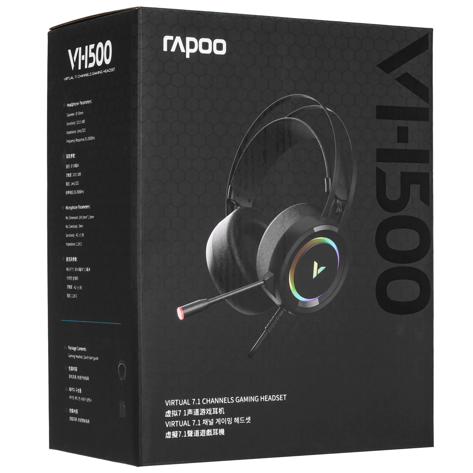 Одна из ключевых особенностей Rapoo VH500 - технология виртуального объемного звучания 7.1, которая открывает перед игроком трёхмерное аудиопространство. Она помогает максимально точно определять направление шагов врага, местоположение источников стрельбы и любые фоновые звуки в игре.