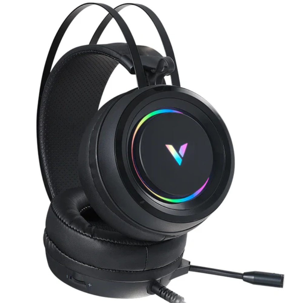 VH500 выделяется сдержанным, но выразительным внешним видом. Матовый корпус глубокого черного цвета выполнен из сочетания металла, качественного пластика и мягкой экокожи. RGB-подсветка на чашах добавляет устройству игрового характера, создавая эффектную атмосферу во время сессий - от динамичных экшенов до спокойного киберспорта.