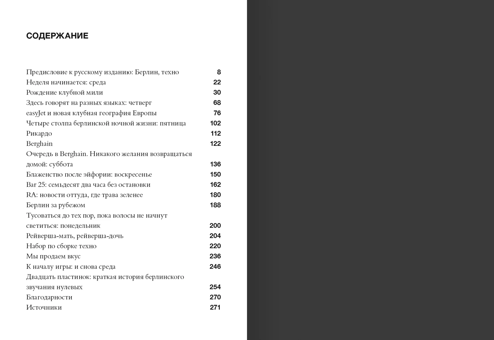 Эта книга о том, как Берлин обретал свой нынешний статус. О людях, о знаменитых клубах, о царящей в них атмосфере. Но не стоит забывать что Берлин - не единственное место где умеют делать качественное техно. Поэтому эту книгу нужно читать не только под пульсирующую музыку из Берлина.