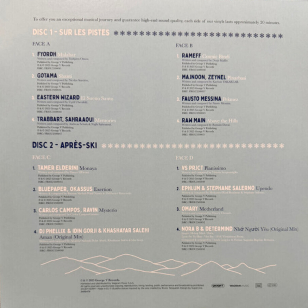 Двойной винил на цветном носителе превращает релиз в коллекционный объект: глубокое, «тёплое» аналоговое звучание подчёркивает текстуры перкуссии, бархат баса и воздушные синтезаторные слои. В компиляции собраны артисты международной сцены Buddha-Bar, каждый из которых добавляет собственный культурный оттенок, от ближневосточных мотивов и средиземноморской мелодики до современного европейского chill-electronica. Winter Sessions звучит как саундтрек к идеальному зимнему вечеру: музыка для панорамных террас, неспешных разговоров и созерцания падающего снега. Это релиз о настроении, элегантности и лёгком побеге от реальности, именно за это поклонники ценят фирменные компиляции Ravin уже более двух десятилетий.