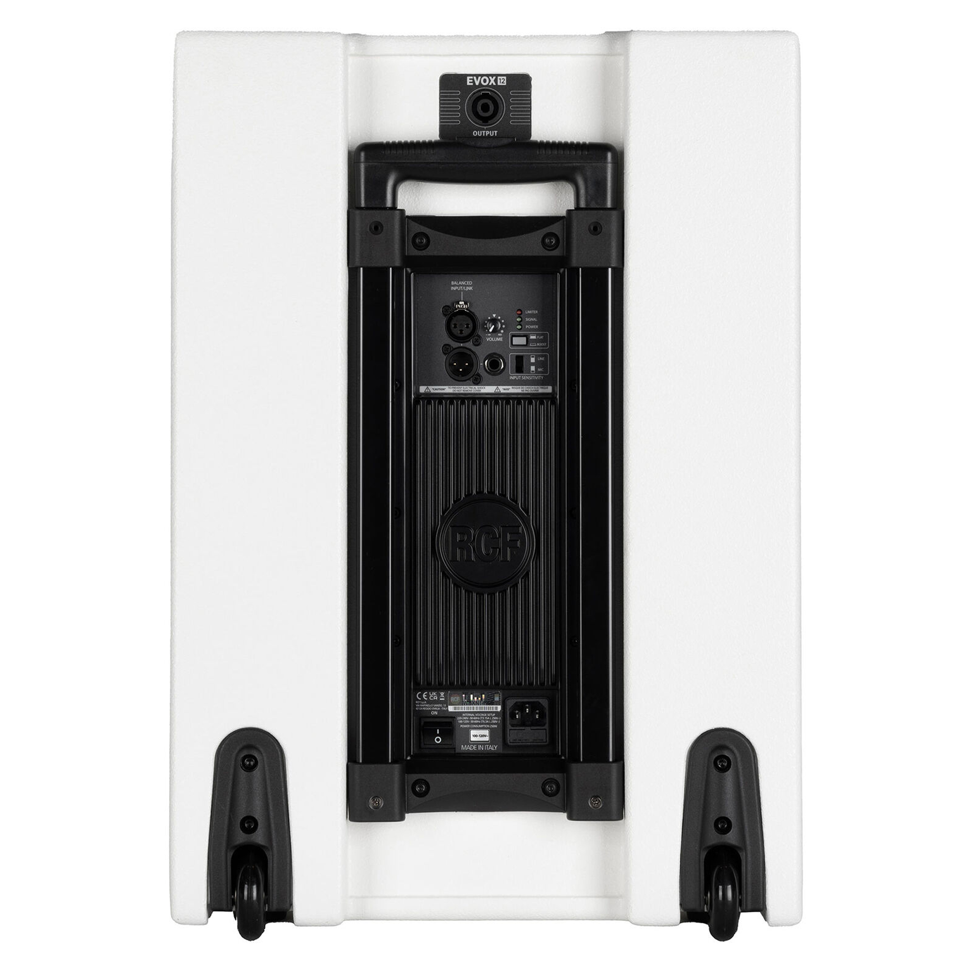 RCF EVOX 12 один из самых мощных акустических комплектов типа линейного массива в своем классе которая обеспечивает особенно глубокое и динамичное воспроизведение на высоких уровнях благодаря встроенному 1400 Вт усилителю мощности. Верхняя секция комплекта имеет восемь высокоэффективных неодимовых 4 » полно диапазонных динамика распространяя звук на достаточно большие расстояния за счет угла раскрытия. Также нужно отметить расширенный среднечастотный и мощный басовый диапазон, который обеспечивает 15 – ти дюймовый сабвуфер. Несмотря на высокую производительность, корпус RCF EVOX 12 очень компактен, благодаря встроенным колесам и выдвижной рукоятке очень легко транспортируется.