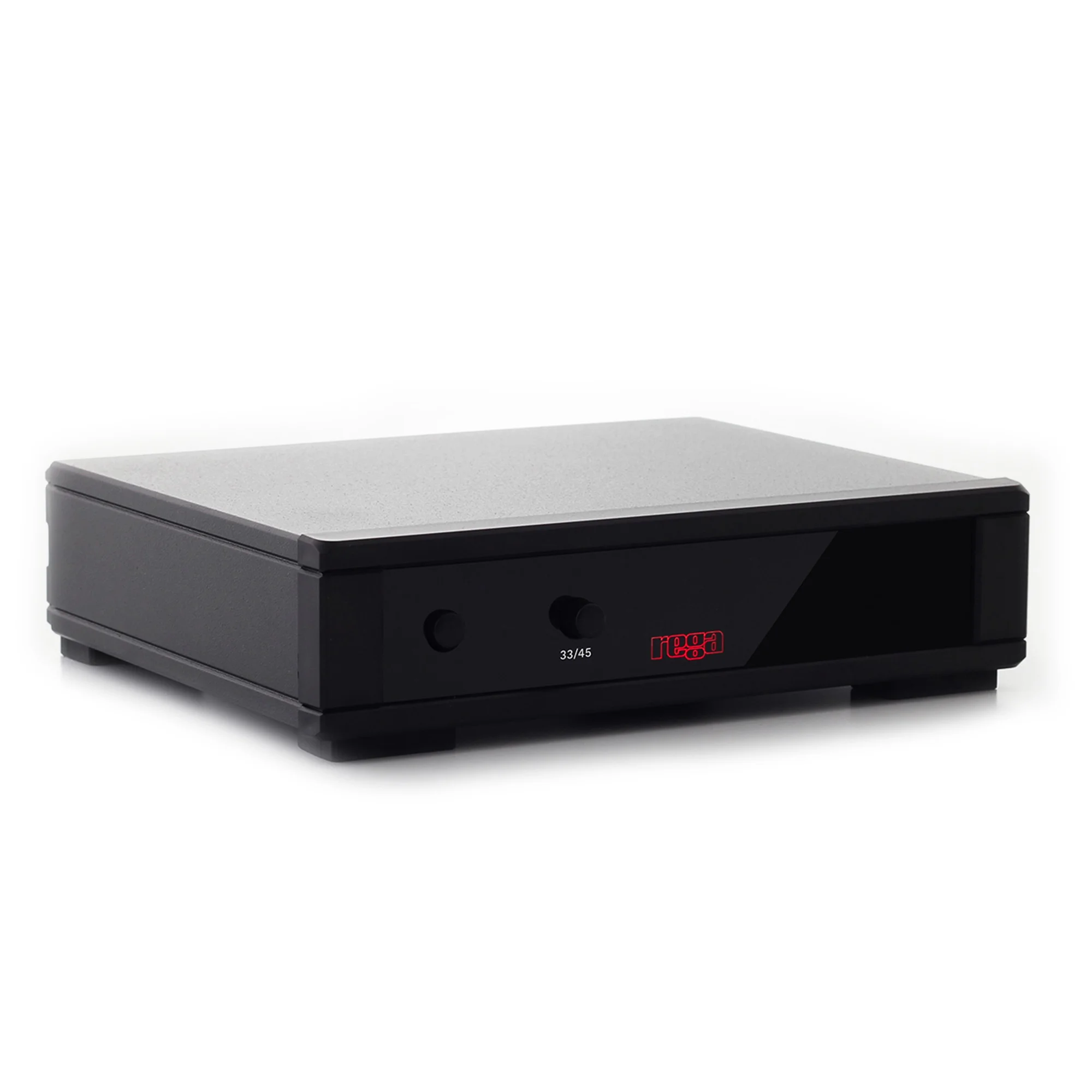 Электродвигатель имеет обновленную плату управления, улучшенное охлаждение, получает питание в 24 В от адаптера и характеризуется низким уровнем шума. Для выбора требуемой скорости вращения диска (33,3 или 45 об/мин) достаточно перебросить пассик с одного шкива мотора на другой. Внешний блок питания Rega Neo mk2 с электронной системой переключения скоростей. Стол получил три новые опорные ножки из сантопрена, которые эффективно справляются с вибрациями. Модель теперь выглядит еще более лаконично, так как ее включатель питания перекочевал под панель корпуса.