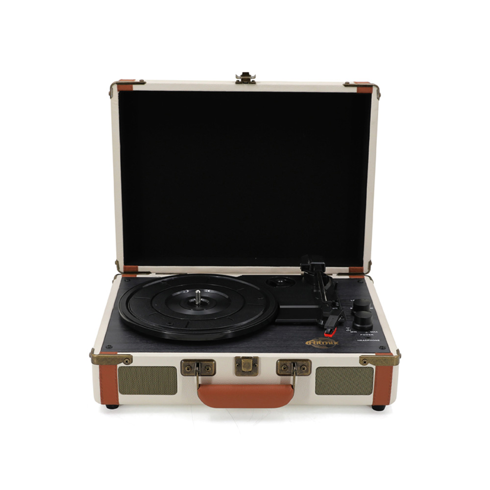 Ritmix LP-130B - проигрыватель грампластинок для меломанов, кто хочет вернуться или приобщиться к аналоговому звуку. Проигрыватель поддерживает три скорости воспроизведения пластинок: 33 1/3, 45 и 78 оборотов в минуту. Поворотный тонарм с ручным управлением позволит более точно настроить проигрыватель под конкретный звукосниматель. Наличие встроенного фонокорректора позволит значительно упростить процесс подключения проигрывателя к домашней системе.