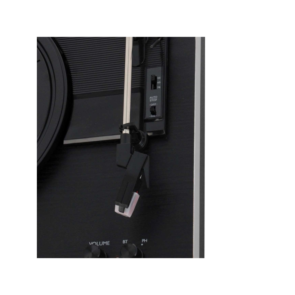 В этой модели есть встроенный фонокорректор. В комплект поставки входят две 10-ваттных колонки, которые подключаются через двухканальный вход RCA и обеспечивают мощный, громкий и чистый стереозвук.