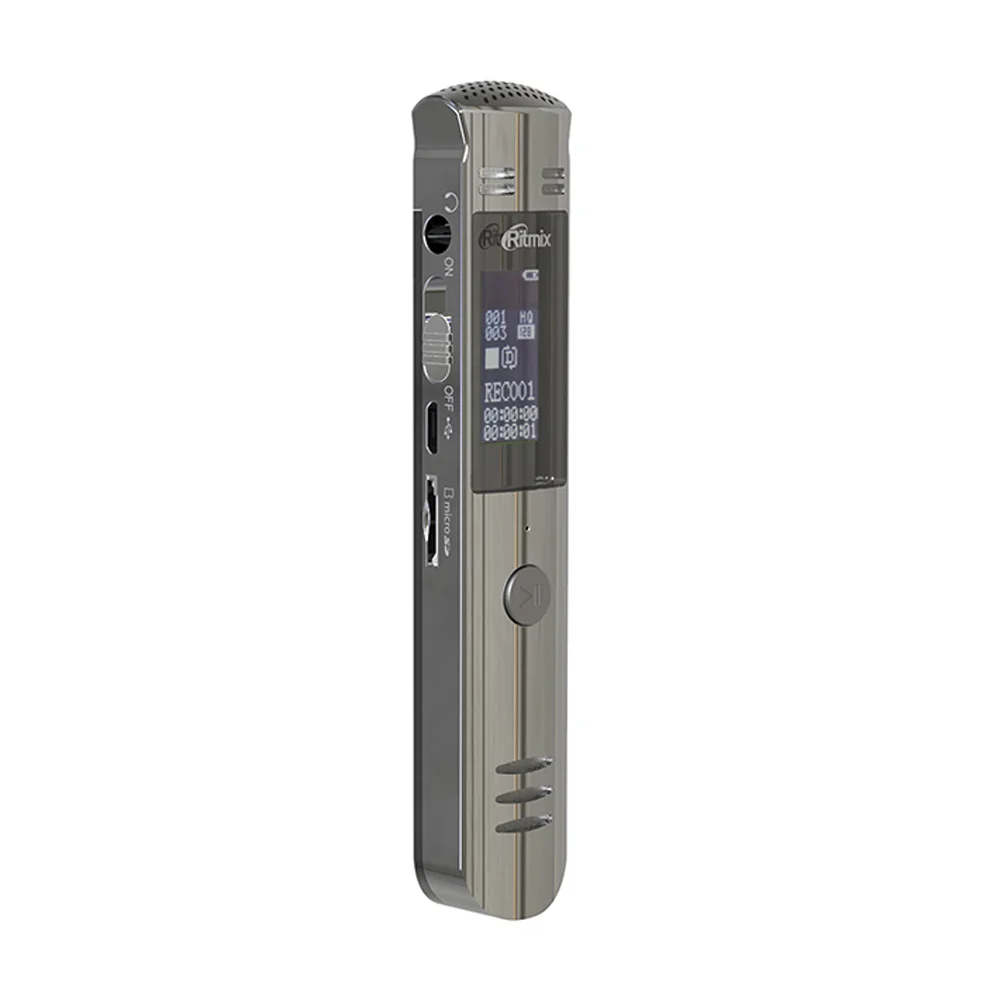 Ritmix RR-190 – цифровой диктофон в компактном металлическом Hi-Tech корпусе с режимом подавления посторонних шумов, голосовой активацией и световым индикатором записи. RR-190 также имеет универсальные форматы записи – MP3, WAV, которые не требуют конвертации.