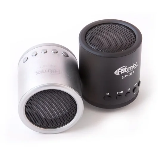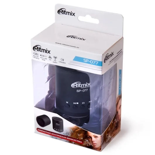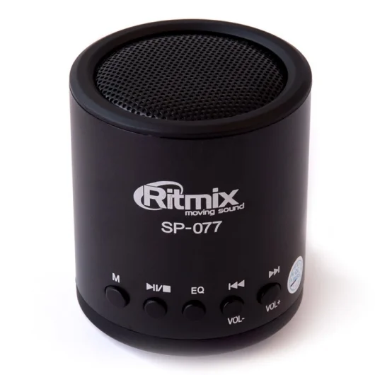 Ritmix SP-077 – это компактная акустическая мини-система с чистым звучанием, совместимая с большинством мультимедийных устройств (мобильные телефоны, смартфоны, планшеты, MP3-, MP4-, CD-, DVD-плееры, персональные компьютеры, ноутбуки, портативные игровые приставки и др). Встроенный приёмник позволяет слушать радио в FM-диапазоне; как антенна для улучшения приёма сигнала используется входящий в комплект USB-кабель, он же используется для зарядки через USB-порт или для подключения к внешним устройствам через разъём для наушников 3,5 мм (смартфон, планшет, ноутбук и т.д.). Наличие встроенного аккумулятора и компактные размеры устройства позволяют использовать его как в стационарных условиях, так и в мобильном режиме. Длительность автономной работы от полного заряда аккумулятора около 2 часов на среднем уровне громкости, на высокой громкости – около полутора часов. Слот для карты памяти MicroSD и разъем для USB-флэшек дают удобную возможность воспроизведения аудиофайлов непосредственно с карты памяти. Встроенный эквалайзер позволяет скорректировать звучание в зависимости от музыкальной композиции.