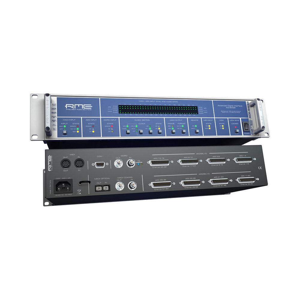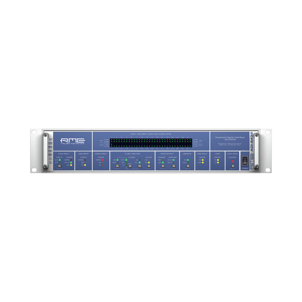 ADI-6432R BNC предлагает 64 канала двухсторонней конвертации между форматами MADI to AES-3id. Базируясь на известном конвертере ADI-6432, этот прибор предлагает легкость интеграции и оперирования с помощью стандартных коннекторов BNC. Имеет статусный дисплей, технология SteadyClock для подавления джиттера и реклокинга, удаленный контроль через миди, трансфер миди- и RS232-данных через MADI, система Redundant power supply. Обеспечивает коаксиальное и оптическое соединение, возможен вариант поддержки одномодовых коннекторов.