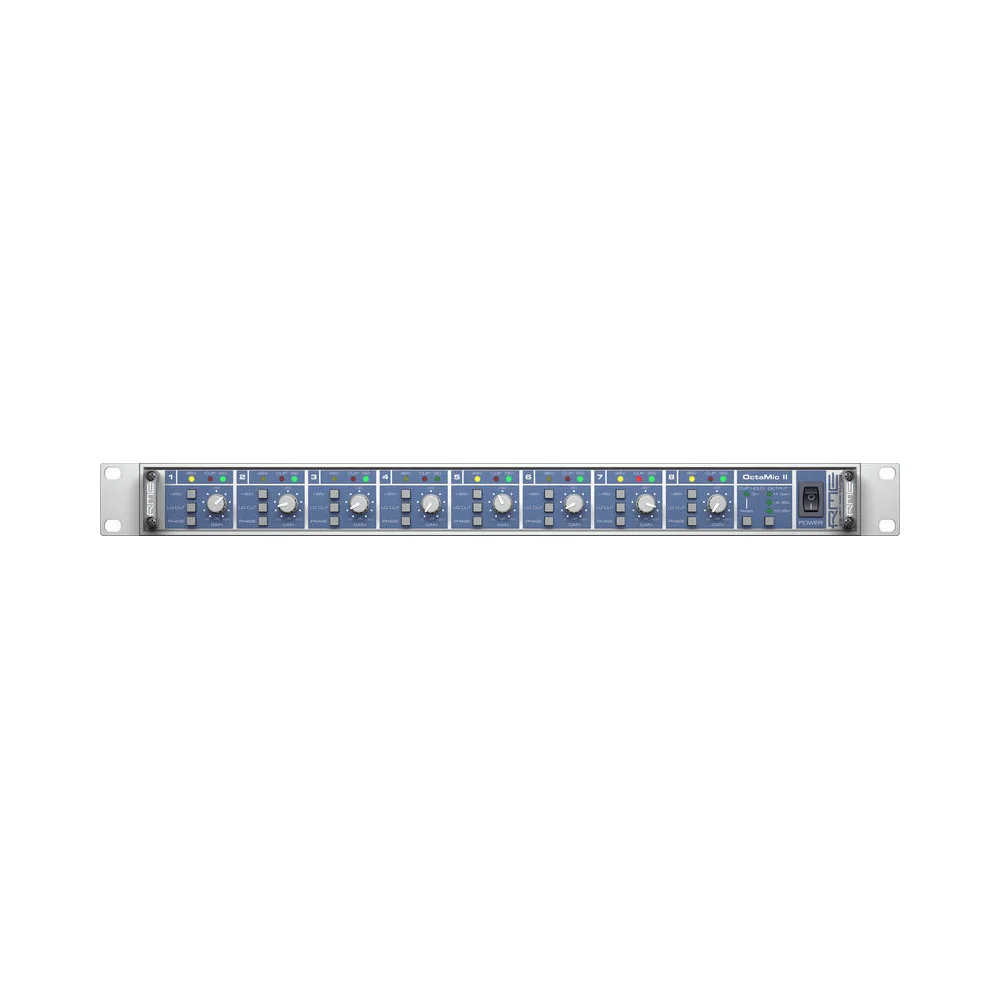 Восьмиканальный предусилитель и аналого-цифровой преобразователь OctaMic II заменяет модель OctaMic, от которой отличается встроенным АЦП, отсутствием фантомного питания на симметричном TRS входе комбинированного разъема, поддержкой входного уровня до +21 дБ, улучшенными отношением сигнал/шум и уровнем гармонических искажений, возможностью выбора источника синхрослова (внутренний генератор, AES или Word Clock), встроенным блоком питания. Кроме того, увеличенный и модернизированный корпус способствует лучшему охлаждению.