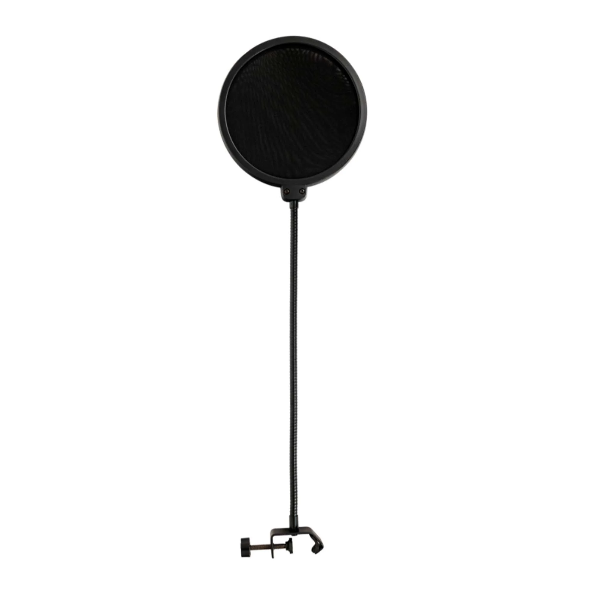 Данная модель усилена двумя дополнительными болтами на месте соединения с «гусиной шеей». Крепится поп-фильтр при помощи струбцины к микрофонной стойке или держателю. Длина легко регулируемой «гусиной шеи» составляет 34 см, благодаря чему ветрозащиту можно выставить в любом удобном положении. Поп-фильтр - незаменимый аксессуар для дикторов, блогеров, стримеров и вокалистов.