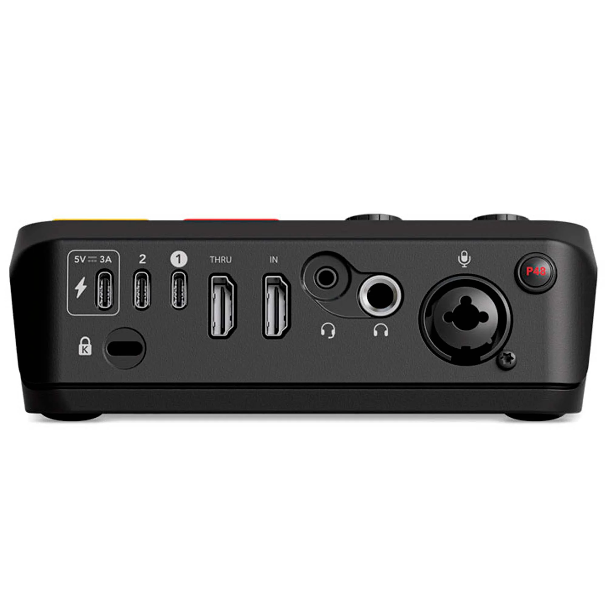 Устройство имеет аудиовходы студийного уровня XLR для микрофонов и инструментов, гарнитур и беспроводных микрофонов RØDE, а также сверхмалошумящий предусилитель Revolution Preamp с высоким коэффициентом усиления и мощную обработку звука APHEX, обеспечивающую первозданное качество звука. HDMI входы обеспечивают потоковую передачу до 4K30 и 4K60 проходной сигнал для невероятного качества видео в широком спектре приложений, от потоковой передачи и игр до подкастинга и создания контента до бизнес-презентаций. Четыре полностью настраиваемых SMART пэда (больших подсвечиваемых кнопки) для запуска звуков, голосовых эффектов и MIDI-команд.