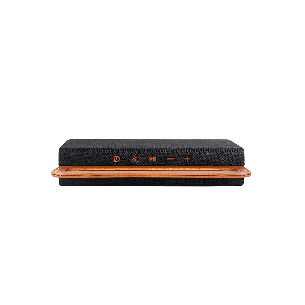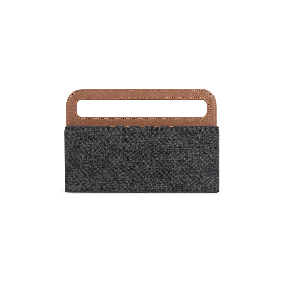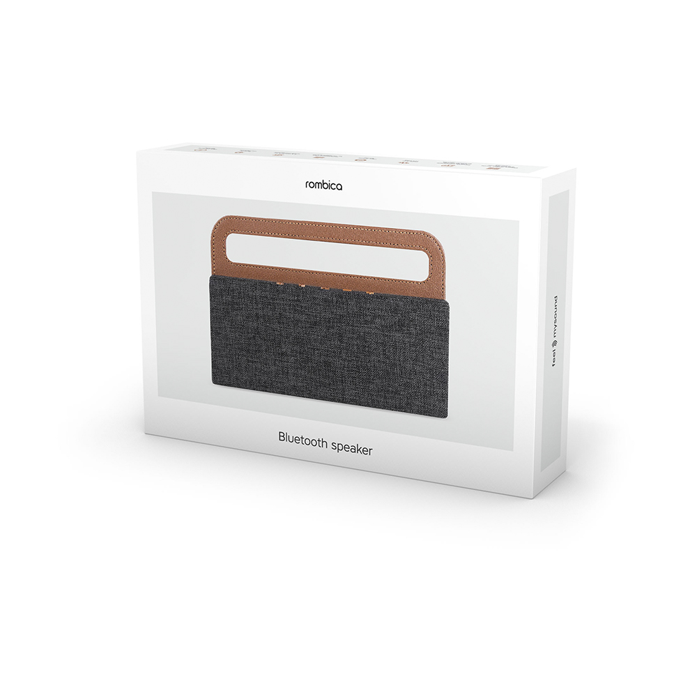 Устройство представляет собой плоский коробок с ручкой. Покрытие из текстиля защищает динамики. Материал поглощает вибрации во время проигрывания треков. Для удобной транспортировки Rombica MySound BT-27 получил ручку, выполненную из экокожи. Мягкая отделка не скользит в руке, её приятно держать, рука меньше устаёт при ношении.
