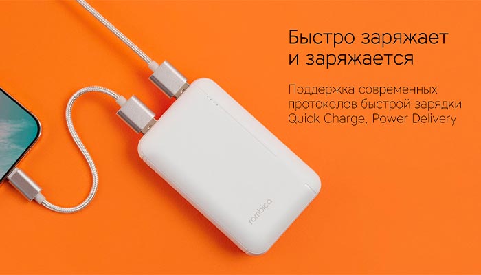 Аккумулятор поддерживает популярные протоколы быстрой зарядки - Power Delivery и Quick Charge. При необходимости быстрого заряда устройства вам не придется долго ждать.