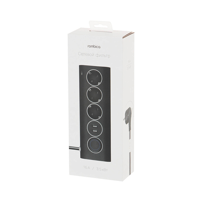 Сетевой фильтр Rombica NEO WC3U предназначен для безопасного подключения к сети разнообразной бытовой, компьютерной и портативной техники. На корпусе аксессуара расположены три евророзетки, рассчитанные на максимальную нагрузку 3500 Вт, и пара портов USB-A, которые позволяют одновременно заряжать два мобильных устройства (до 16 А).
