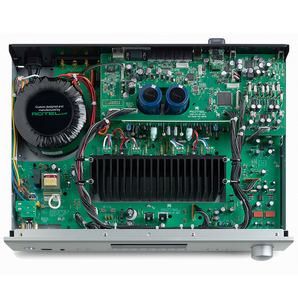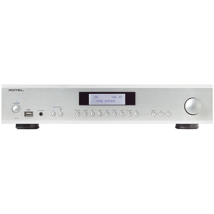 Флагманский A14 обладает самой высокой мощью и самым широким набором функций в серии. A14 выдает по 80 Вт на канал RMS на 8 Ом, при двух работающих каналах. Но сухие цифры не отражают реальных возможностей его использования. У A14 мощный блок питания с изготовленным на фабрике Rotel тороидальным трансформатором плюс накопительные конденсаторы с перфорированными обкладками – чтобы без напряжения справляться с трудными нагрузками в виде акустических систем и с динамичными пиками сигналов.