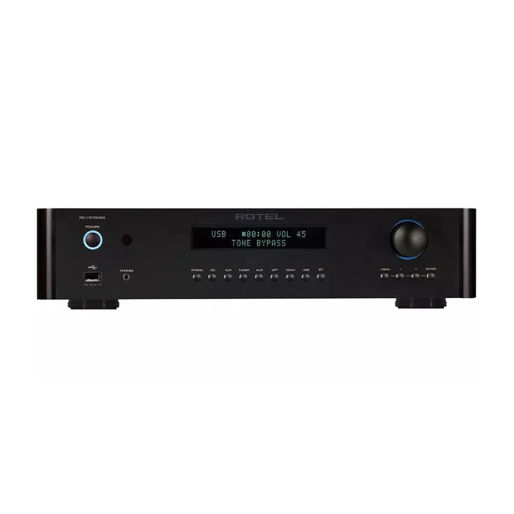Предварительный усилитель оснащен модулем Bluetooth с поддержкой кодеков AAC и aptX. Имеется сертификат Roon Tested, гарантирующий доступ к обширному каталогу online-музыки, а любители аналогового винилового звучания по достоинству оценят наличие на борту Rotel RC-1572MKII фонокорректора для MM-картриджей.