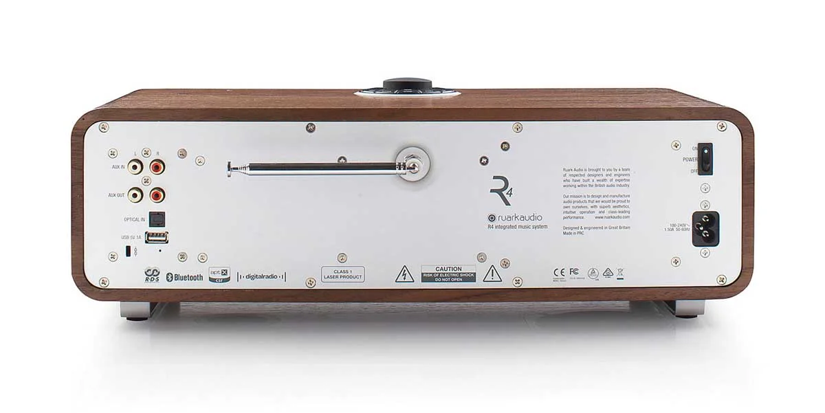 В состав Ruark Audio R4 входит улучшенный и ускоренный проигрыватель CD (с механизмом щелевой загрузки), радио DAB / DAB + / FM и порт USB, совместимый с файловыми форматами MP3 и AAC WMA. Через порт USB также можно заряжать мобильные устройства. Встроенные динамики обеспечивают звучание в формате 2.1 со встроенным сабвуфером.
