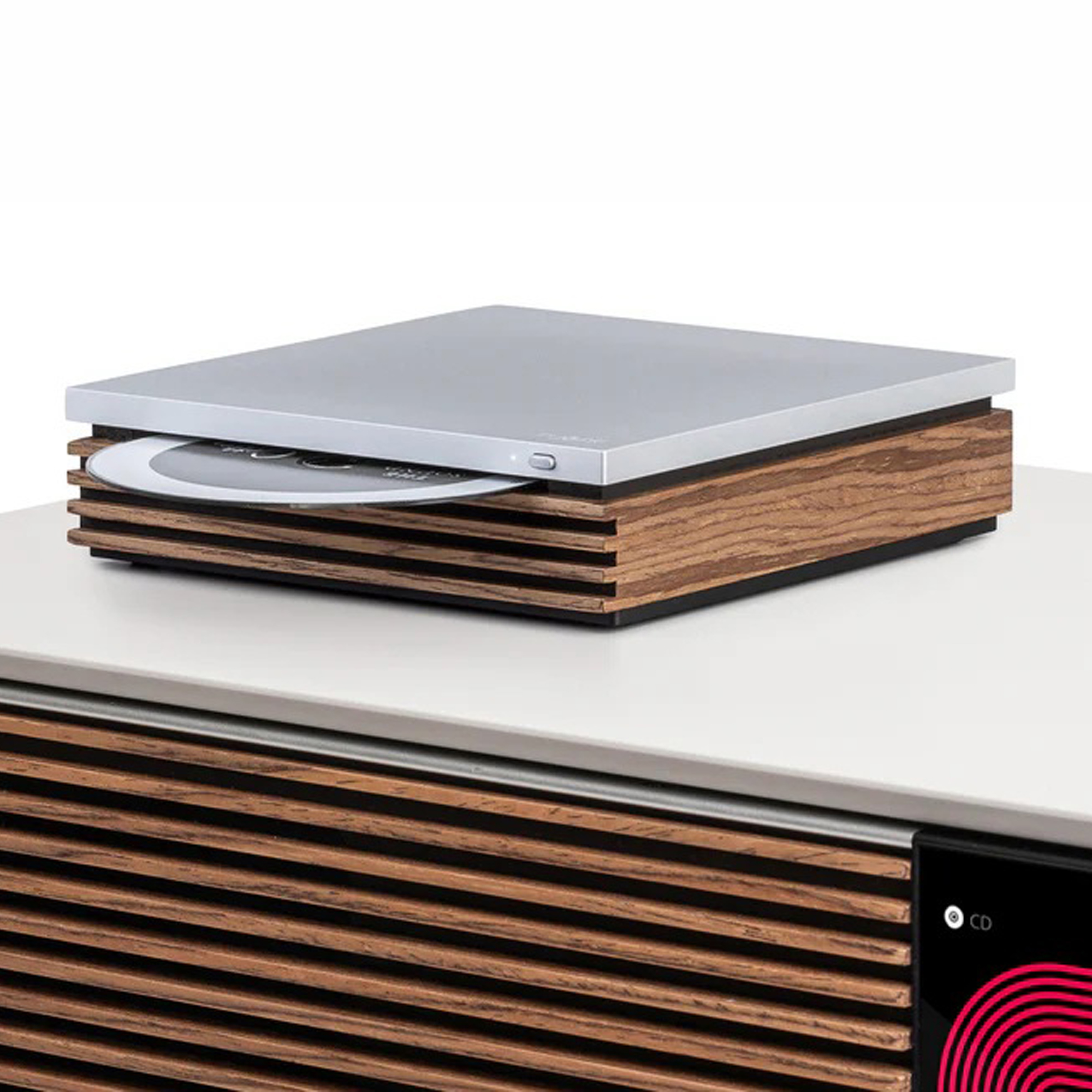 CD-проигрыватель Ruark Audio R-CD100 представляет собой специализированный компонент, разработанный в первую очередь как дополнение к основным системам Ruark серии 100, таким как R410, R610 и R810. Он не является самостоятельным проигрывателем в традиционном смысле, требующим отдельного ЦАП и усилителя, а функционирует как высококачественный CD-транспорт, передающий цифровой сигнал через интерфейс USB-C. Внешний вид устройства безупречно сочетается с дизайном флагманских систем бренда: корпус выполнен из фрезерованного алюминия и отделан натуральным шпоном американского ореха, что придает ему элегантный и тактильно приятный вид, который идеально вписывается в современный или классический интерьер.