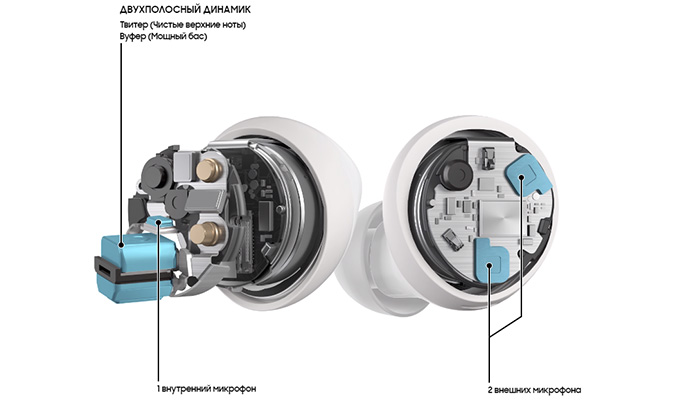 Получите максимум удовольствия от невероятно чёткого и насыщенного звука в новых Galaxy Buds+ с их двухполосными динамиками и улучшенным драйвером. Мощный бас и кристально чистые верхние ноты погрузят вас в атмосферу совершенного звука, где бы вы ни находились.