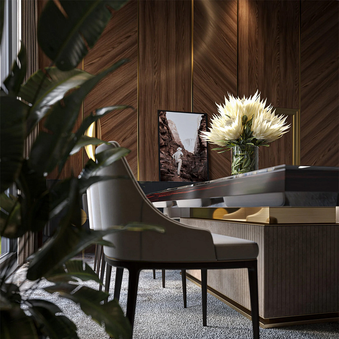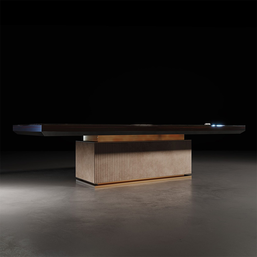 Модель Armstrong - это настоящая витрина роскоши и изысканности. Изготовленный из массива дуба, этот стол обладает невероятной прочностью и элегантностью. Подстолье стола оббито замшевой тканью, придающей ему дополнительную изысканность и утонченность. Опора стола выполнена из нержавеющей стали, покрытой нитридом титана, что придает ему современный и эксклюзивный вид.