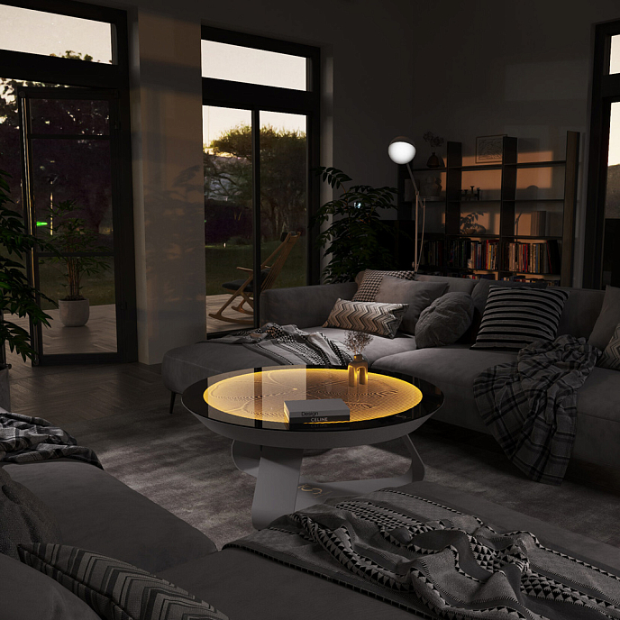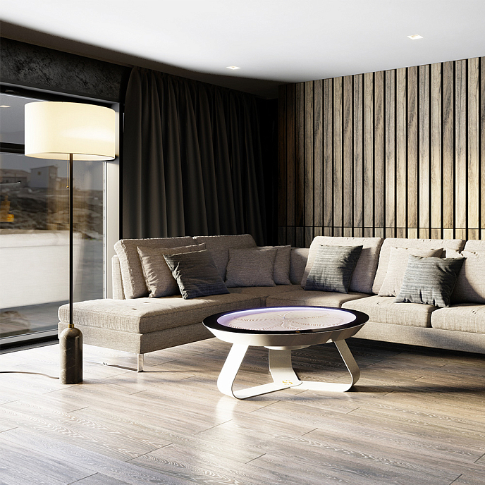 Для любителей острых ощущений, можно выбрать любой цвет подсветки через приложение на iPhone. Стол выдерживает нагрузку до 100 килограмм. Чтобы обеспечить сохранность, столешница накрыта прочным закалённым стеклом Optiwhite, что позволяет в полной мере насладиться движением металлического шара по песку. К столу добавлены модули беспроводной зарядки, чтобы заряжать телефоны, часы, наушники и т.д.