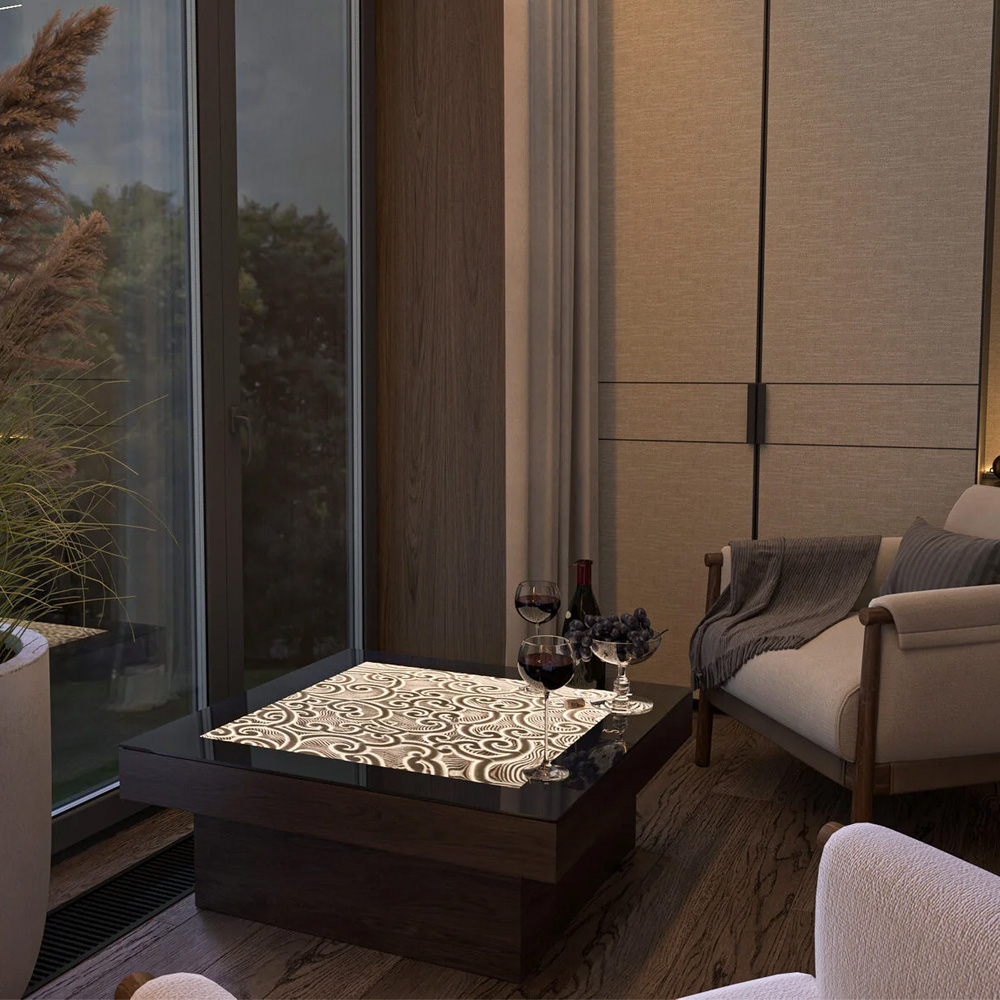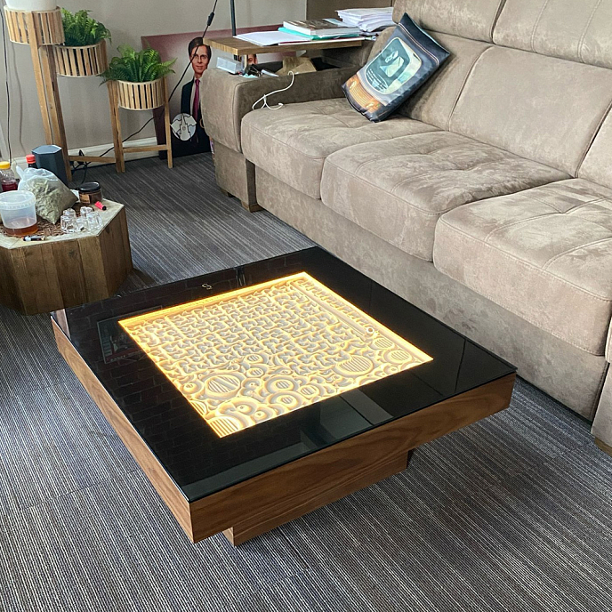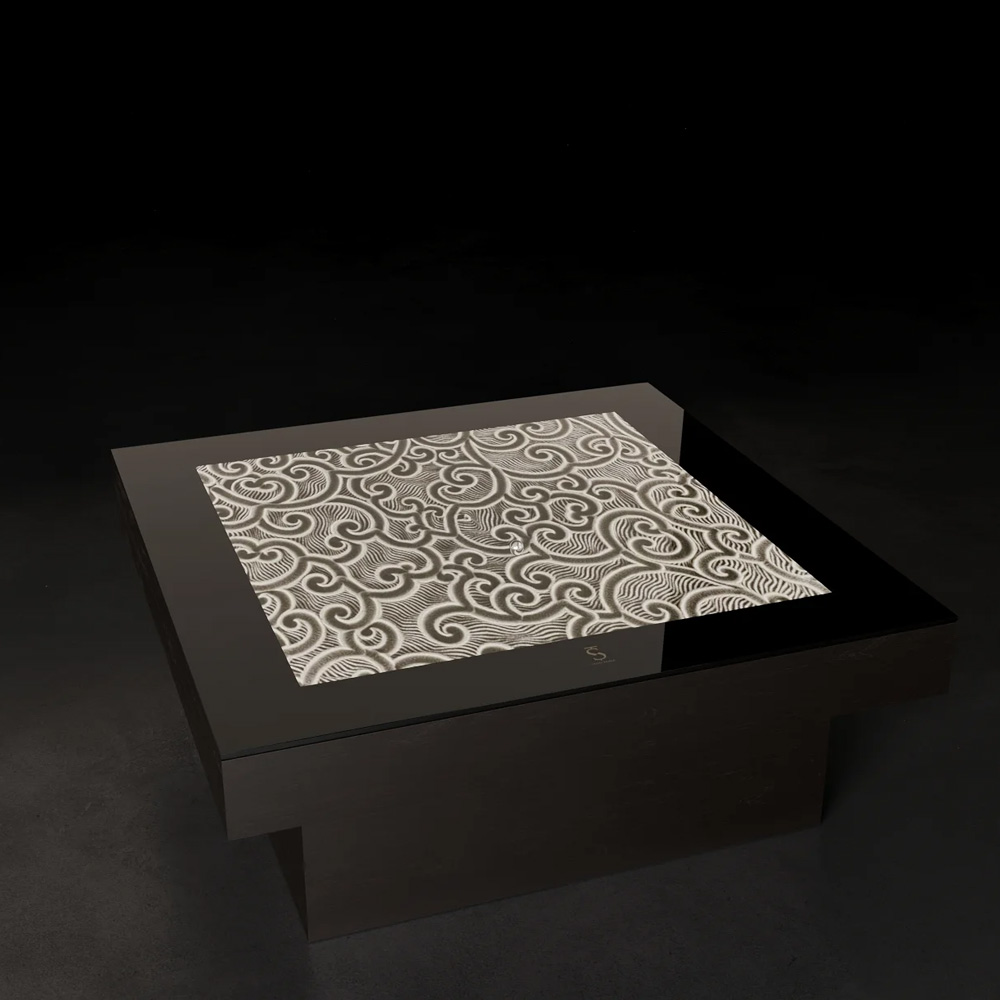 Для любителей острых ощущений, можно выбрать любой цвет подсветки через приложение на iPhone. Стол выдерживает нагрузку до 100 килограмм. Чтобы обеспечить сохранность, столешница накрыта прочным закалённым стеклом Optiwhite, что позволяет в полной мере насладиться движением металлического шара по песку. К столу добавлены модули беспроводной зарядки, чтобы заряжать телефоны, часы, наушники и т.д.