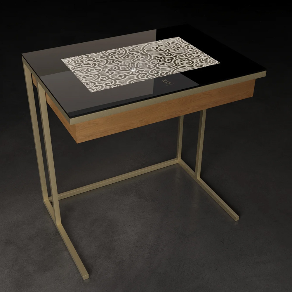 Для любителей острых ощущений, можно выбрать любой цвет подсветки через приложение на iPhone. Стол выдерживает нагрузку до 100 килограмм. Чтобы обеспечить сохранность, столешница накрыта прочным закалённым стеклом Optiwhite, что позволяет в полной мере насладиться движением металлического шара по песку. К столу добавлены модули беспроводной зарядки, чтобы заряжать телефоны, часы, наушники и т.д.