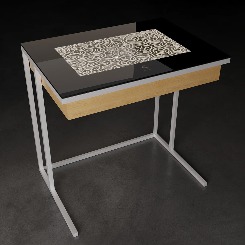Для любителей острых ощущений, можно выбрать любой цвет подсветки через приложение на iPhone. Стол выдерживает нагрузку до 100 килограмм. Чтобы обеспечить сохранность, столешница накрыта прочным закалённым стеклом Optiwhite, что позволяет в полной мере насладиться движением металлического шара по песку. К столу добавлены модули беспроводной зарядки, чтобы заряжать телефоны, часы, наушники и т.д.