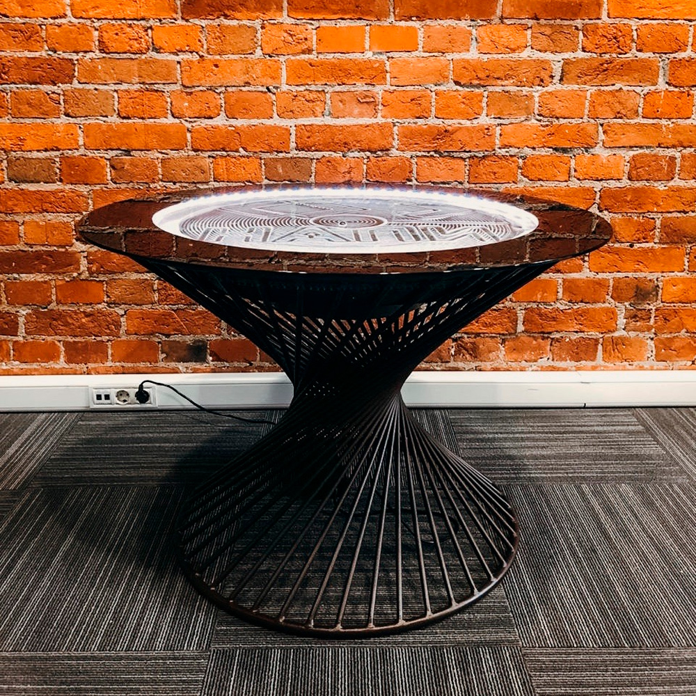 Это один из самых сложных проектов, который был реализован Sandtable. Стол выполнен в стиле лофт. Железное подстолье винтовой формы и деревянная столешница полностью интегрированная внутрь, создали эффект лёгкости данной конструкции. С этой точки зрения лофтовый стол Vortex стал достойной альтернативой традиционным классическим вариациям и подчеркнул выбранное направление в интерьере дома.