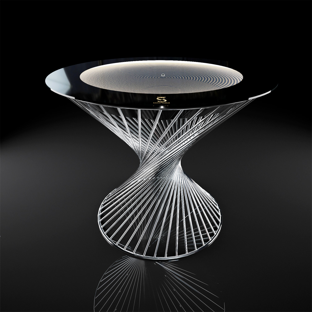 Для любителей острых ощущений, можно выбрать любой цвет подсветки через приложение на iPhone. Стол выдерживает нагрузку до 100 килограмм. Чтобы обеспечить сохранность, столешница накрыта прочным закалённым стеклом Optiwhite, что позволяет в полной мере насладиться движением металлического шара по песку. К столу добавлены модули беспроводной зарядки, чтобы заряжать телефоны, часы, наушники и т.д.