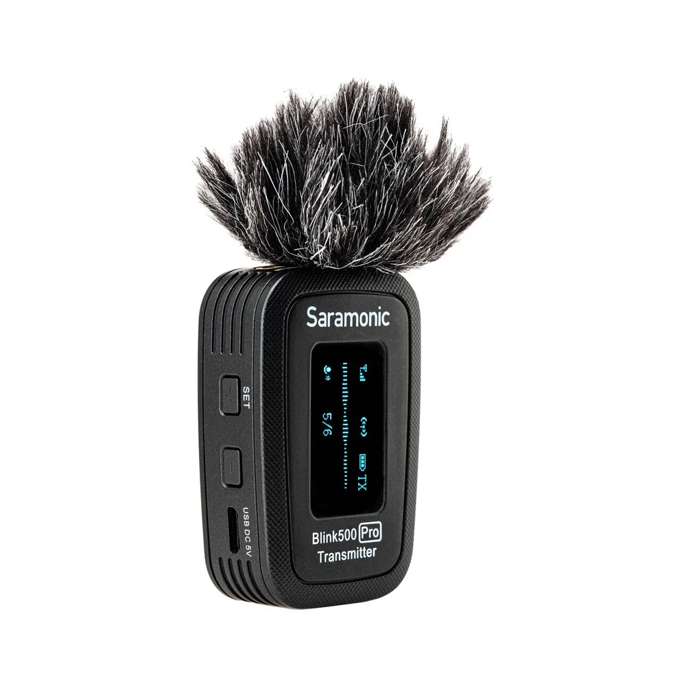 Система Blink 500 Pro может использоваться с 1 или 2 передатчиками. Передатчик оснащен встроенным микрофоном, что позволяет использовать его даже без петлички: например, передатчик можно установить в опциональный держатель Blink500 Pro HM (с рукояткой) и использовать в качестве ручного микрофона (журналистика, сбор новостей). В комплекте даже имеется меховая ветрозащита для такого варианта использования.