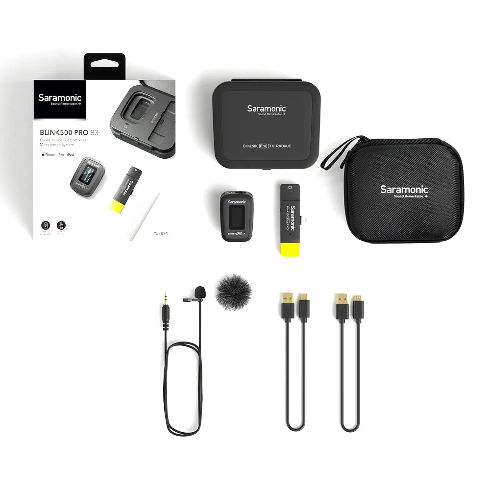Компактная цифровая беспроводная система. Pro версия Blink 500 отличается от обычной четким OLED экраном, на котором отображается ключевая информация (уровень сигнала, уровень заряда, уровень усиления микрофона / громкости наушников, моно или стерео режим). Передатчик теперь можно подключить не только к микрофону, но и к линейному выходу (например, с пульта звукорежиссера), а к приемнику стало возможно подключить наушники – для живого мониторинга звука. Время работы на одном заряде увеличено с 6 до 8 часов, а дальность действия увеличена с 50 до 100 метров (без помех и препятствий). Задержка звука снижена в 2 раза: с 12 до 6 мс.