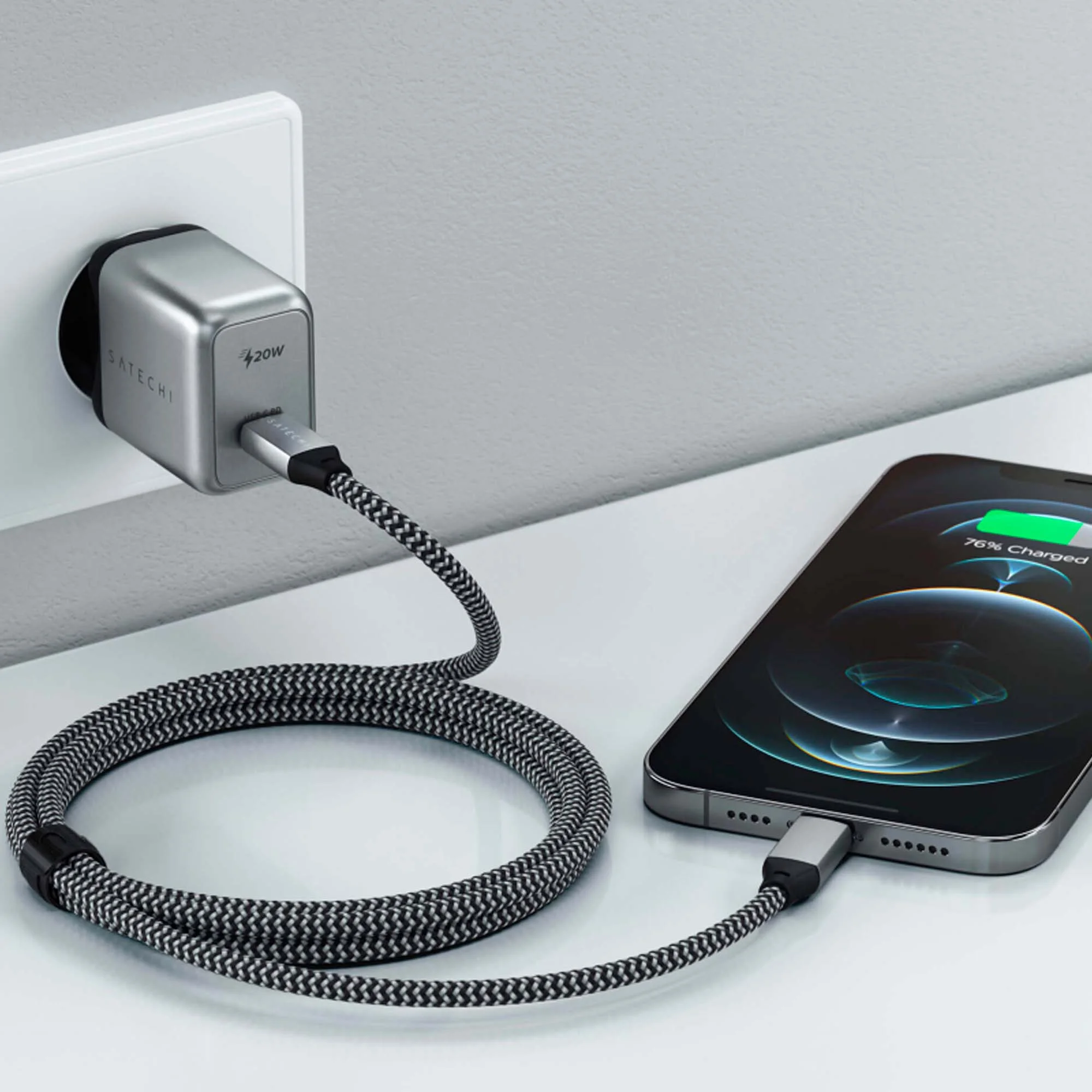 Cамое компактное и удобное для путешествий зарядное устройство на сегодняшний день - настенное зарядное устройство Satechi USB-C PD мощностью 20 Вт с функцией подачи питания USB-C для надежной быстрой и эффективной зарядки подключенного устройства.