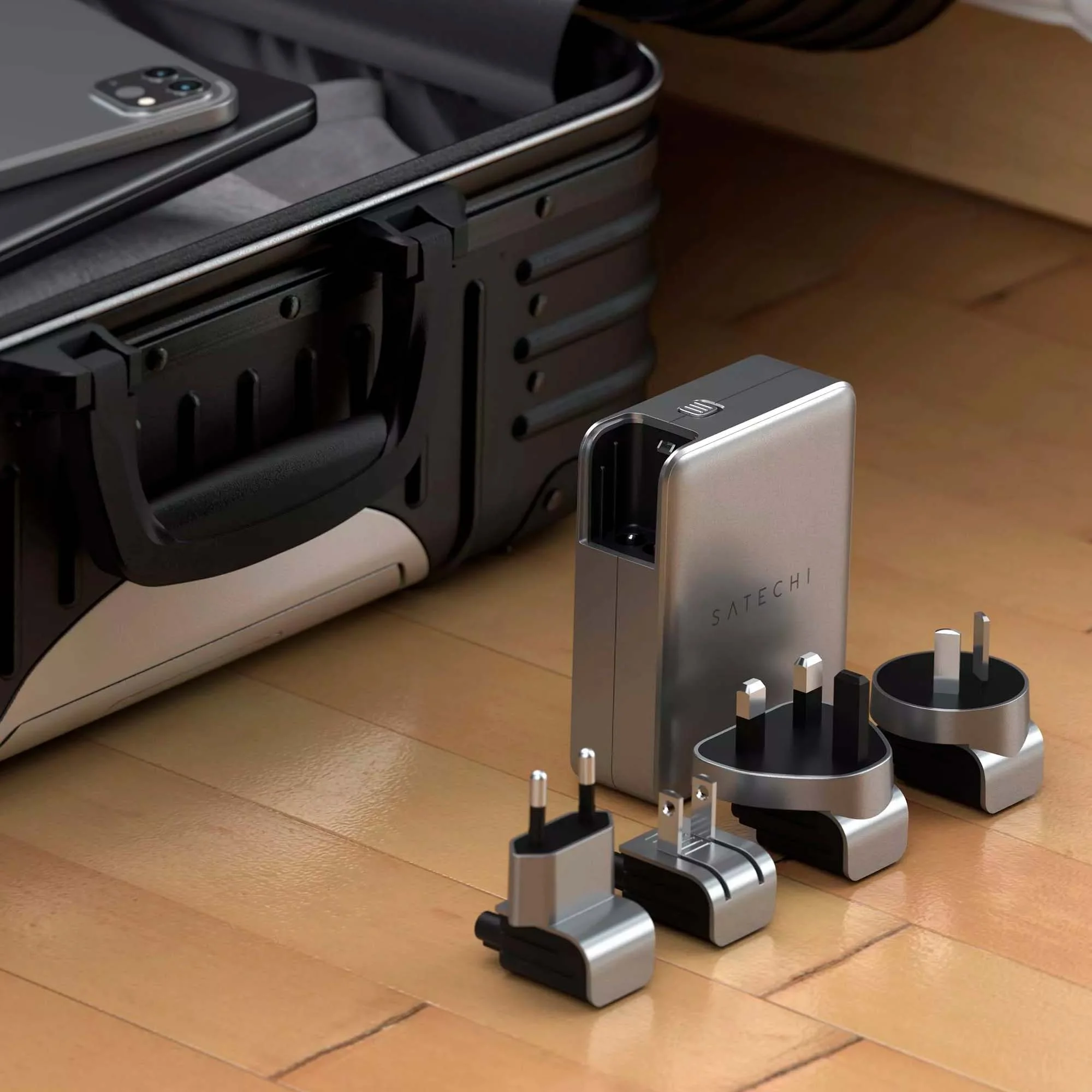Это элегантное зарядное устройство, созданное на основе мощной технологии GaN, использует новейший протокол Power Delivery 3.1 с интеллектуальным распределением мощности для регулировки подачи питания в зависимости от портов и подключенных устройств. Его инновационный, удобный для путешествий дизайн включает в себя четыре сменных дорожных адаптера и сетчатую сумку для удобства переноски