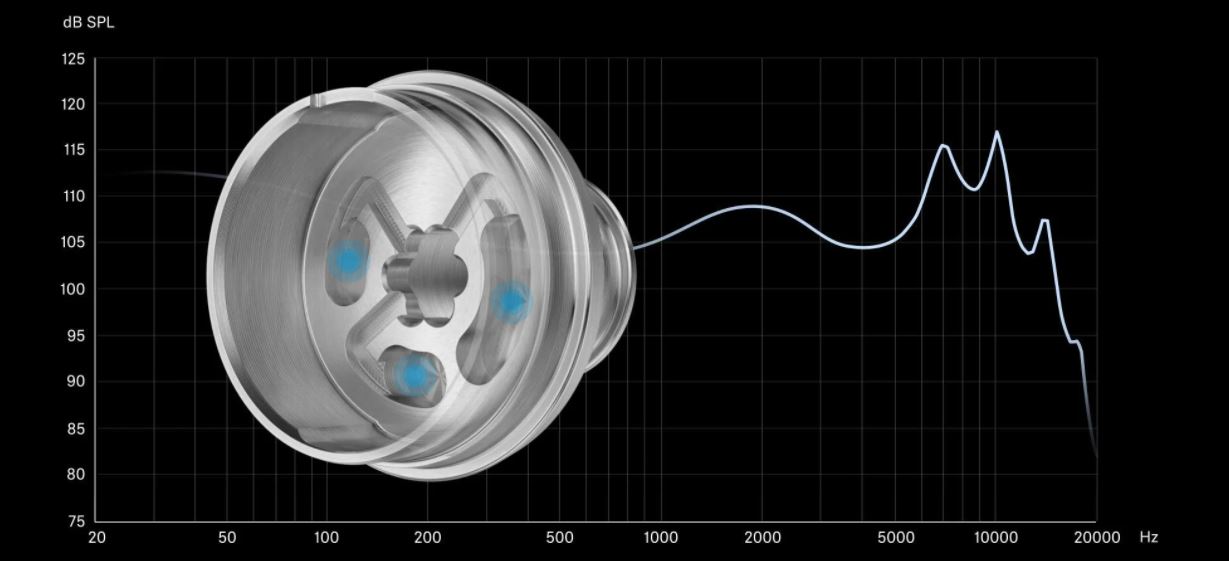 При разработке IE 900 был сделан выбор в пользу одного динамического драйвера высочайшего качества. Чтобы получить именно тот звук, который искали, инженеры разработали сложную систему из трех резонаторов Гельмгольца — X3R. Она врезана прямо в прочный алюминиевый корпус каждого наушника. Эти крошечные каналы устраняют резонансные пики, которые в менее продвинутых продуктах могут окрашивать звуковой почерк и изменять ощущение от вашей музыки. Кроме того, сложная структура сопла каждого наушника — воронка — закручивает акустический поток для дополнительного сглаживания пиков.