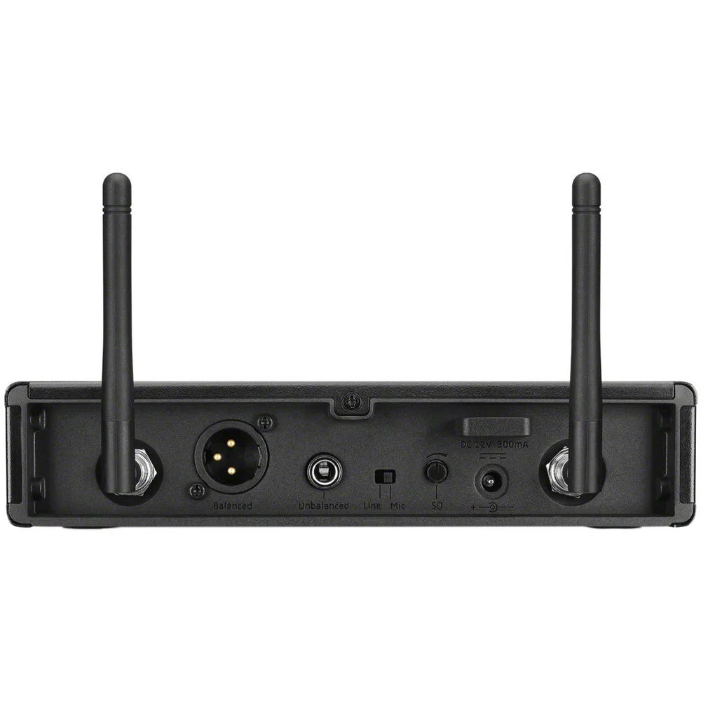 Беспроводной приёмник EM-XSW 2 из комплекта Sennheiser XSW 2-835-A обладает двумя отсоединяемыми внешними разнесенными антеннами и металлическим корпусом. Выходы выполнены на балансном разъеме XLR и небалансном разъеме 1/4" TS Jack, поддерживается 12 каналов по 8 банков в каждом. Графический ЖК-дисплей на фронтальной панели отображает номер активного канала, частоту, уровень сигнала и заряд батареи, а также вспомогательную информацию. На корпусе есть и дополнительные кнопки настройки и синхронизации, в наличии – большая ручка регулировки громкости. Есть функция автоматического управления частотами. Источник питания NT 12-5 CW в комплекте универсален и работает с напряжением от 100 до 240В.