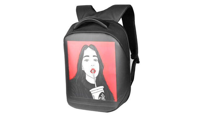 Интегрированный LED-дисплей размещен непосредственно в корпусе рюкзака и имеет безрамочный дизайн, поэтому в выключенном состоянии он практически не привлекает внимание. Светодиодный экран имеет габариты 25х25 см, разрешение 4096 пикселей и способен демонстрировать до 16.5 миллионов цветов. Управлять изображением на нем ты с легкостью сможешь при помощи удобного и понятного мобильного приложения. Загружай любые картинки, анимации, эмодзи или текст, и показывай их всем на экране своего рюкзака!