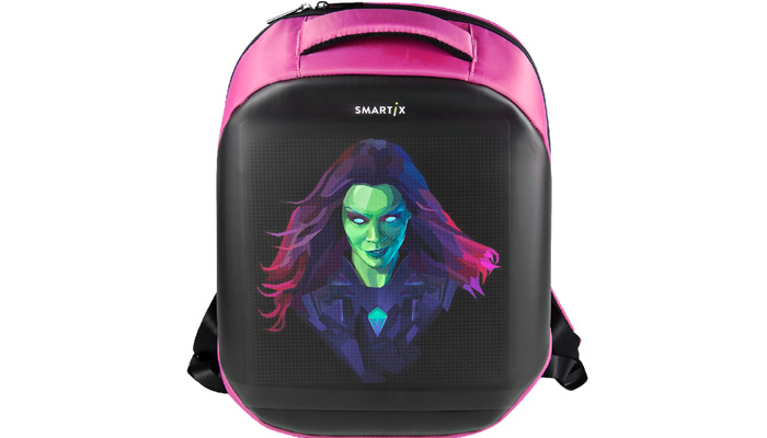 Интегрированный LED-дисплей размещен непосредственно в корпусе рюкзака и имеет безрамочный дизайн, поэтому в выключенном состоянии он практически не привлекает внимание. Светодиодный экран имеет габариты 25х25 см, разрешение 64x64 пикселей и способен демонстрировать до 16.5 миллионов цветов. Управлять изображением на нем ты с легкостью сможешь при помощи удобного и понятного мобильного приложения LED Space. Загружай любые картинки, анимации, эмодзи или текст, и показывай их всем на экране своего рюкзака!