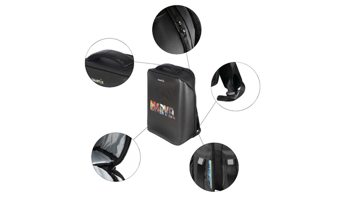 Рюкзак SMARTIX LED 5 HD оснащен качественной фурнитурой — надежными застежками-молниями, не пропускающими влагу. Водоотталкивающие скрытые застёжки-молнии защитят ваши вещи не только от влаги и грязи, но и от несанкционированного доступа. Высокое качество фурнитуры позволяет интенсивно использовать продукцию SMARTIX в течение долгих лет.