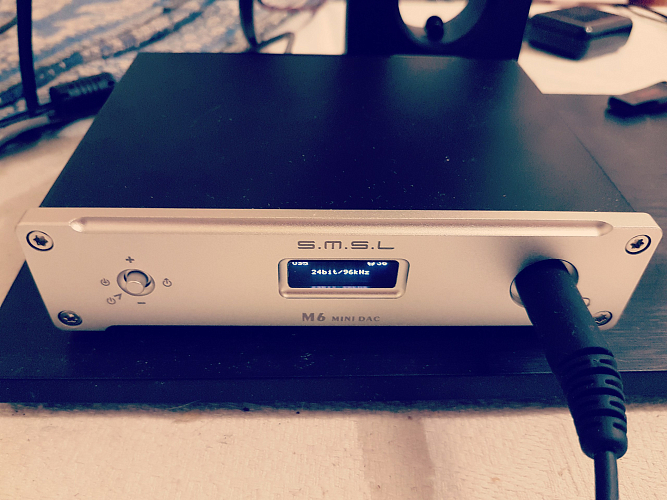SMSL M6 примечателен реализованным управлением. Для осуществления настроек в M6 используется джойстик на передней панели. Он позволяет настроить уровень громкости, выбрать канал входного сигнала и режим работы устройства. Это очень современный и удобный способ управления. На небольшом экране отображается частота дискретизации проигрываемого материала, уровень громкости и выбранный канал входного сигнала.